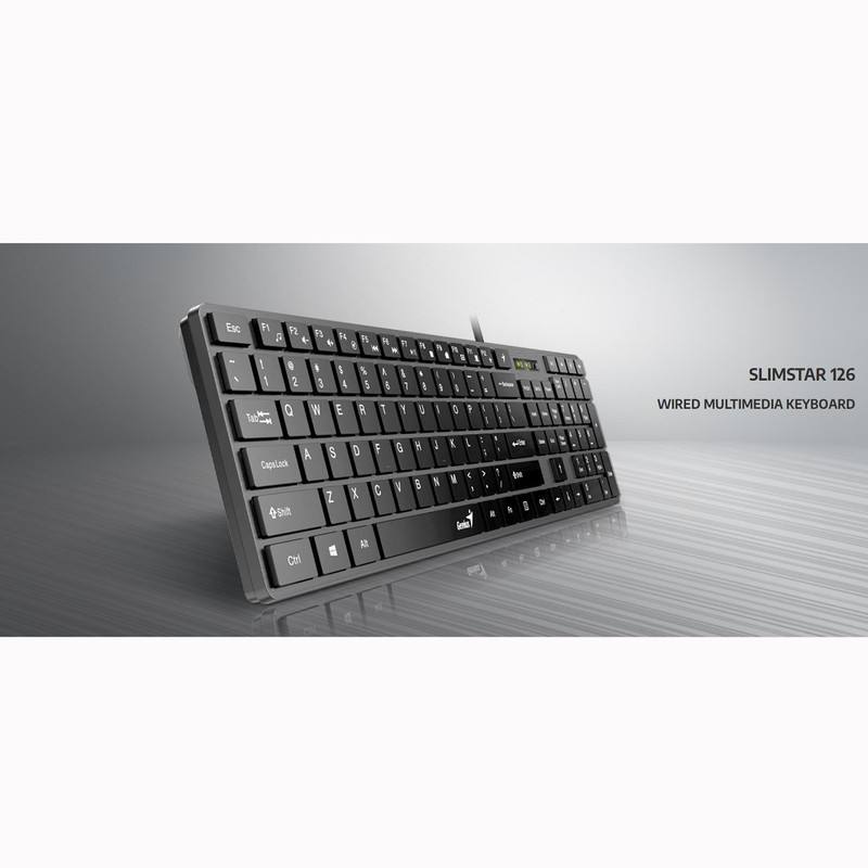 این روزها استفاده از لوازم کامپیوتری تبدیل به امری روزمره و اجتناب ناپذیر برای اکثر افراد شده است و نقش پررنگ کامپیوترها در زندگی شخصی و کاری ما انسانها غیرقابل انکار است. این موضوع باعث شده است انتخاب و استفاده از لوازم کامپیوتری با کیفیت، خوشساخت و مقاوم از اهمیت زیادی برخوردار باشد. بدیهی است یکی از متعلقات کامپیوتر که کاربر بیشترین استفاده را بهصورت مستقیم از آن انجام میدهد کیبورد است. محصول «جنیوس» مدل «SlimStar 126» یکی از کیبوردهای کاربردی و خوشساخت ارائه شده به بازار توسط این شرکت است. این کیبورد در دسته کیبوردهای دارای سیم قرار میگیرد و از طریق اتصال USB به کامپیوتر وصل میشود. دکمههای کیبورد از دوام زیادی برخوردار هستند و تا مدتها بدون مشکل کار خواهند کرد. دکمههای این دستگاه به نرمی فشرده میشوند و کمصدا هستند. همچنین این کیبورد از بخش مخصوص اعداد نیز برخوردار است. سه چراغ کوچک در بخش بالا و سمت راست دستگاه تنظیمات آن را به کاربر اطلاع میدهند. بهطور کلی این مدل وسیلهای مقاوم و باکیفیت است که بهخوبی میتواند نیازهای خانگی و اداری افراد را پاسخگو باشد.