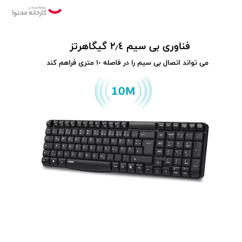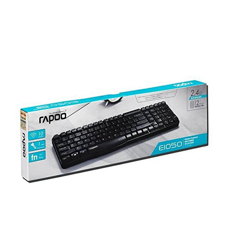 صفحه کلید E1050 رپو توسط دانگل USB و کاملا وایرلس به سیستم شما می شود و فرکانسی برابر با 2.4 گیگاهرتز دارد. برد بی سیم آن تا 10 متر می رسد بنابراین شما آزدانه و بدون دردرسرهای همیشگی استفاده از کابل می توانید با خیال راحت از این کیبورد استفاده کنید. بدن نیاز به نصب نرم افزار و یا درایوری، تنها با اتصال دانگل کوچک USB به کیس و یا لپ تاپ می توانید از این کیبورد استفاده نمایید.