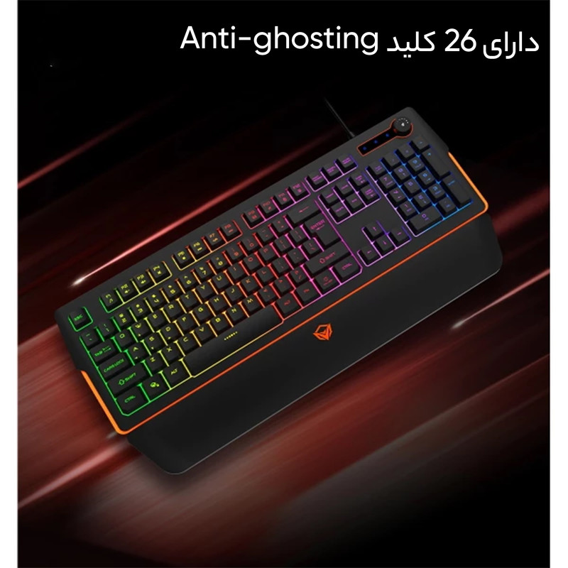 کیبورد مخصوص بازی میشن MEETION MT-K9520 یکی از جدید ترین محصولات برند معتبر و محبوب میشن می باشد که در زمینه تجهیزات گیمینگ فعالیت می کند. این برند به علت تولید محصولات با کیفیت ولی با قیمت کم محبوب است.کیبورد مخصوص بازی میشن MEETION MT-K9520 نسبت به امکاناتی که دارد قیمت معقولی دارد و ارزش خرید بالایی را به محصول داده است. این کیبورد دارای 104 کلید می باشد و با USB به کامپیوتر وصل می شود. سیم این محصول 1.8 متر طول دارد و زن آن تقریبا 790 گرم میباشد.