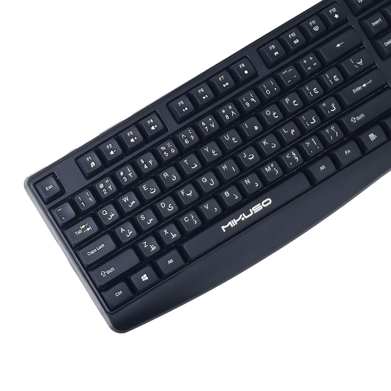 ست کیبورد و ماوس میکاسو مدل C013 Pro مناسب برای استفاده روزانه در محیط کار، منزل و غیره بوده و دارای حروف فارسی حک شده می باشد. نحوه اتصال این محصول به صورت بیسیم و از طریق دانگل USB ممکن می شود. کیبورد این محصول مقاوم در برابر نفوذ مایعات بوده و جنس آن ساخته شده از پلاستیک بسیار مرغوب و مقاوم در برابر ضربه های احتمالی می باشد. حسگر ماوس از نوع اپتیکال با دقت 1600/ 1200/ 800 نقطه بر اینچ بوده و امکان تغییر دقت ماوس توسط دکمه DPI وجود دارد. اتصال کیبورد و ماوس به صورت بیسیم از طریق دانگل USB با فرکانس بیسیم 2.4 گیگاهرتز و برد 10 متر بوده و ماوس آن دارای 4 عدد کلید شامل کلید چپ/ راست/ اسکرول و کلید تنظیم dpi می باشد. این محصول از نصب خودکار بهره مند است و به محض اتصال به صورت خودکار شناسایی می شود و دیگر نیازی به نصب نرم افزار خاصی نمی باشد. تعداد کلیدهای کیبورد 104 عدد با عمر ضربه پذیری بالا و دارای نشانگر های LED برای نمایش نوع کارکرد و دارای پایه های تنظیم ارتفاع از دیگر ویژگی های این محصول می باشد. تامین انرژی این محصول از طریق باتری قلمی بوده و بسیار کم مصرف می باشد.