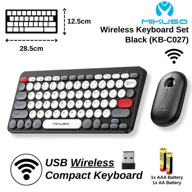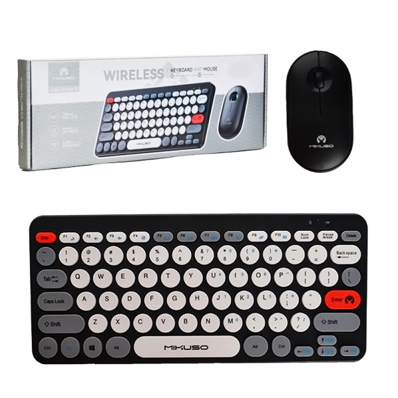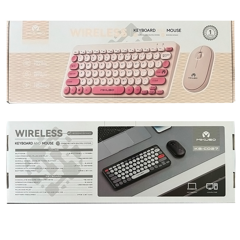 کیبورد و ماوس بی سیم میکاسو KB-CO27 مناسب برای استفاده های روزمره در محیط کار و منزل بوده و دارای طراحی ارگونومیک و خوش دست با دکمه های روان می باشد. جنس بدنه ماوس و کیبورد از پلاستیک با کیفیت بوده و با طراحی ارگونومیک در استفاده طولانی مدت شما را خسته نخواهد کرد. تعداد کلیدهای کیبورد 78 عدد، دارای کلید های مولتی مدیا و کلید ترکیبی Fn می باشد. این محصول به صورت بیسیم و از طریق دانگل USB به سیستم متصل می شود و حداکثر برد بیسیم آن 10 متر می باشد. تعداد کلیدهای ماوس 3 عدد شامل کلیک چپ و راست و کلید اسکرول بوده و مجهز به حسگر اپتیکال با میزان دقت 1600 نقطه بر اینچ می باشد.