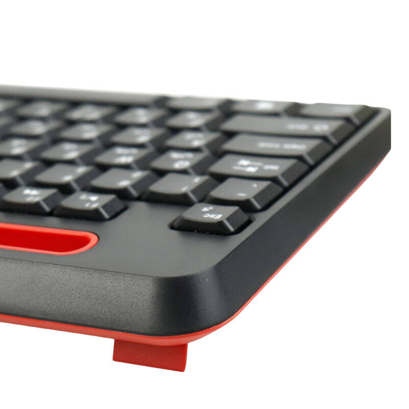 سایر قابلیت‌های صفحه کلیدکیبورد دارای 104 عدد کلید فیزیکی شامل کلید های مالتی مدیا و فانکشن (Fn)، دارای حروف فارسی حک شده به صورت لیزری بر روی کلید ها/ اتصال بی سیم از طریق دانگل USB با فرکانس اتصال 2٫4 گیگاهرتزی، بدنه ساخته شده از جنس پلاستیک ABS مقاوم در برابر فشار و ضربه/ دارای پایه های تنظیم ارتفاع جهت سهولت در استفاده، برخورداری از نشانگر های LED جهت نمایش وضعیت کارکرد صفحه کلید/ موفق به کسب استاندارد های سلامتفیزیکی محصول CE و FCC/هولدر موبایل و تبلت