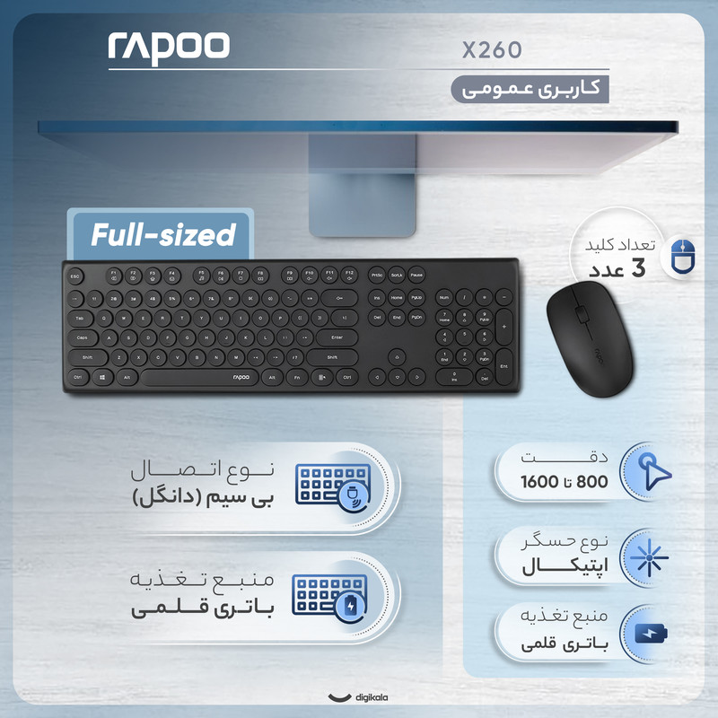 | میانگین عمر باتری صفحه کلید | تا 12 ماه |