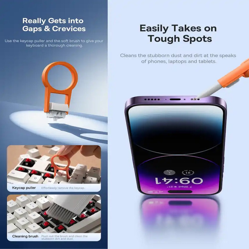 | مشخصات | - کیت تمیز کردن چند منظوره برای تمیز کردن صفحه کلید، هدفون، صفحه نمایش، پورت ها و سوکت ها، اسپیکر تلفن همراه و سایر اجزا و دستگاه ها - دارای شانه ی نرم و ظریف که قابلیت جمع شونده دارد و موجب ابعاد کوچکتر محصول می شود و برای برطرف کردن گرد و غبار، پرز ها و... کاربردیست - دارای سری های مختلف جهت تمیز کردن بخش های مختلف هندزفری ها و کیس شارژ آنها - دارای گیره ی مخصوص برداشتن کلید های کیبورد - دارای سوزن مناسب خشاب سیم کارت - دارای محفظه ی نگهداری و اسپری کردن مایع پاک کننده - دارای دستمال پاک کننده متصل به بدنه (FLOCKED CLEANING WIPE) که به صفحه نمایش دستگاه آسیب نمی رساند - جنس بدنه از پلاستیک ABS با کیفیت و با دوام - طراحی زیبا، یکپارچه و جمع و جور جهت حمل آسان - ابعاد محصول: 117x44.5x44 میلی متر |