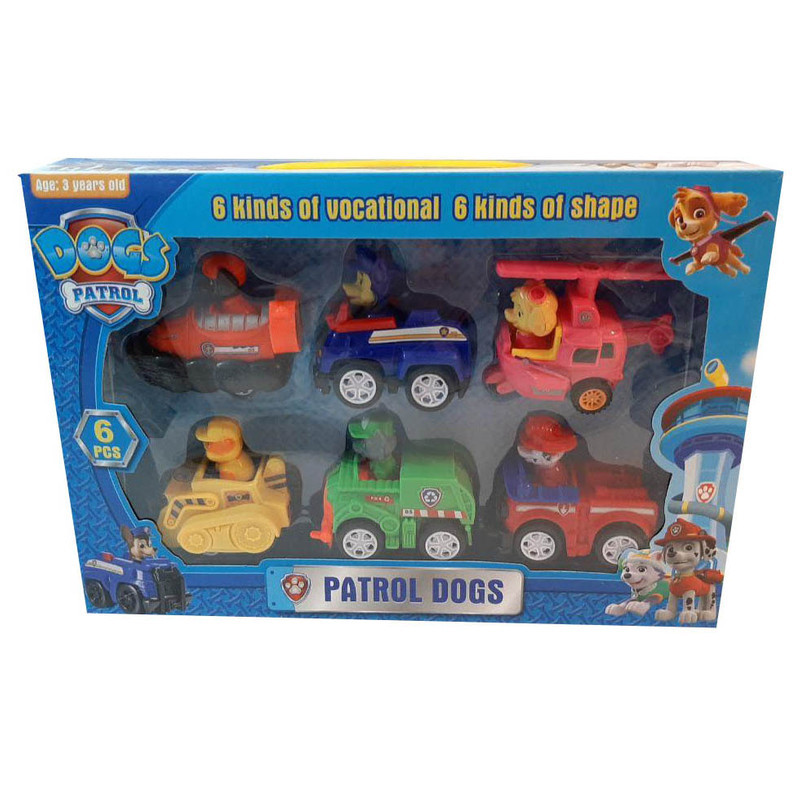 این محصول برگرفته از انیمیشن معروف سگ های نگهبان (PATROL DOGS) بوده ماشین ها بصورت عقب کش قابل استفاده است. مناسب برای کودکان بالای 3 سال و از جنس پلاستیکی و قابل شستشو می باشد.