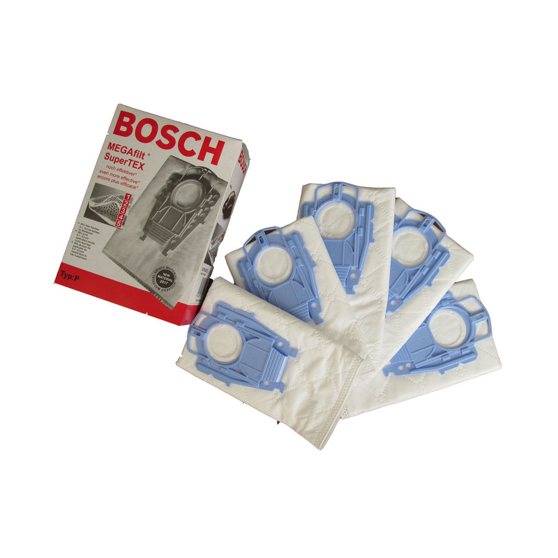 کیسههای زبالهی جارو برقی “MEGAfilt superTEX dust bag” نوع P جزء محصولات درجه یک (پریمیوم) ساخت چین بوده و در بازارهای بین المللی اروپا نیز عرضه میشوند و از مهمترین مدلهای کیسه زبالهی جارو برقیهای بوش محسوب میشوند که قابلیت استفاده از آنها برای حدود ۷۰ درصد از مدلهای مختلف جارو برقیهای این شرکت امکانپذیر است. این کیسهها دارای دریچهای آبی یا خاکستری رنگ جهت ورود گرد و غبار هستند؛ همچنین این کیسهها از دریچهی متحرکی برخوردارند که پس از پر شدن، به راحتی بسته شده و از خروج گرد و خاک به داخل محیط جلوگیری میکند. کیسهی جارو برقی بوش نوع P دارای یک پارچهی نانوی سه لایه است و تا ۹۱ درصد از ورود گرد و خاک به داخل محیط جلوگیری میکند.؛ این کیسه دارای یک فیلتر موتور است که گرد و غبار فیلتر نشده توسط کیسه را از هوای ورودی به جارو برقی حذف کرده و در دراز مدت موجب افزایش طول عمر جارو برقی میشود. از دیگر ویژگیهای این کیسه میتوان به این موارد اشاره کرد: افزایش ۵۰ درصدی کارکرد طولانیتر و نیاز کمتر به تعویض کیسه جارو برقی بدلیل ظرفیت بسیار بالای جذب گرد و غبار، بسته شدن دقیق کیسه از ورود گرد و غبار به موتور جلوگیری کرده و در نتیجه طول عمر دستگاه افزایش مییابد، فیلتر شدن ۹۹ درصد از ذرات ریز گرد و غبار و مقاومت و استحکام قابل توجه در برابر پارگی که بدلیل استفاده از مواد درجه یک در ساخت این کیسه بدست آمده است.