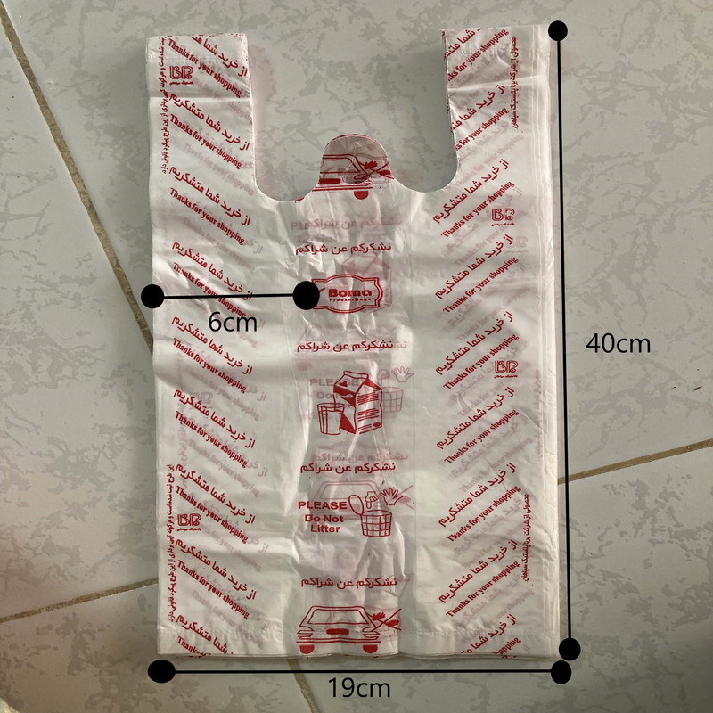 | سایر توضیحات | ابعاد درحالت بسته با احتساب دسته نایلون حدودا 40×19 سانتی متر این نایلون دسته دار تهیه شده از مواددرجه یک و اعلا بدون بو با چاپ طرح از خرید شما متشکریم میباشد مناسب جهت مصارف رستوران ها،خشکبار فروشی ها، لوکس فروشی هاو... سایز باز شده این پلاستیک 30×40 سانتی متر میباشد این نایلون اصطلاحا به نایلون 2 کیلویی معروف است یعنی گنجایش 2 کیلوگرم کالارا دارد بسته 50 عددی |