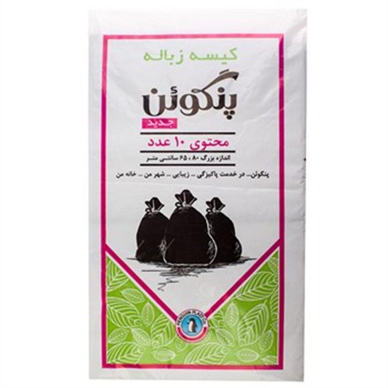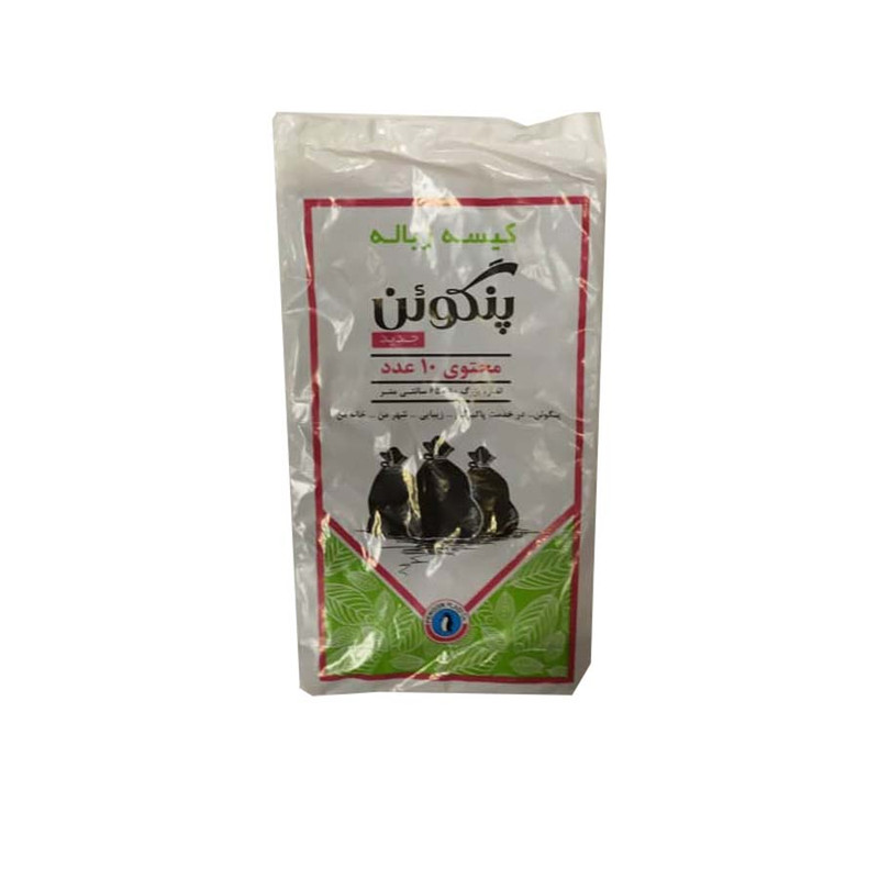 ستفاده از کیسه زبالهی باکیفیت و مقاوم میتواند تا حدود زیادی از کارهای ناخواستهی یک خانه کم کند، گاهی بر اثر استفاده از یک کیسه زبالهی نامرغوب نشتی محتویات کیسه، تمام خانه و مسیر ساختمان تا سطل زبالهی خیابان را کثیف خواهد کرد. کیسه زبالهی 10 عددی (پنگوئن) «Penguin» با ابعاد 80× 65 سانتیمتر و به رنگ سبز است. هر چند کیسه زباله با مواد غذایی تازه سروکار ندارد اما برای حفظ طبیعت در ساخت آن هم از مواد اولیه مرغوب استفاده شده که هنگام تجزیه کمترین اثر را بر روی طبیعت بگذارد. دوخت مقاوم کنارههای کیسه از پاره شدن کیسه جلوگیری میکند به همین دلیل از این کیسه زباله میتوان برای نگهداری لباسهای زمستانی در فصل گرم، هنگام اسبابکشی، جهت نگهداری کتابها برای جلوگیری از نشتن گردو خاک بر روی آنها و ...هم استفاده کرد.