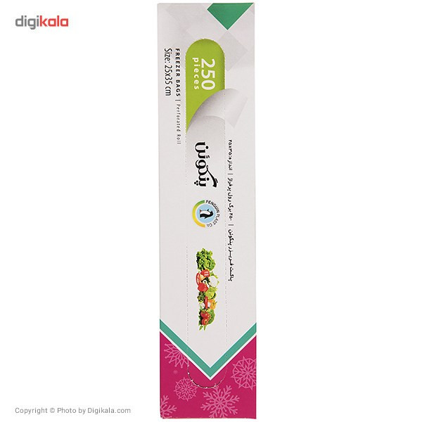کیسه فریزر رولی «پنگوئن» یک رول 250عددی بوده که وجودش در هر خانه و آشپزخانهای الزامی است. این کیسه فریزرها دارای نقاط پرفراژ هستند تا به هنگام نیاز، بهراحتی از یکدیگر جدا شوند. همچنین میتوانید جعبهی کیسه فریزر پنگوئن را بهراحتی درون کشوی آشپزخانهتان قرار دهید. جنس این کیسهها از هایدنسیتی پلیاتیلن HDPE است که استحکام و مقاومت بیشتری دربرابر پارگی دارند. کیسه فریزر پنگوئن یک جعبهی 250عددی است و با تهیهی آن برای مدتزمان زیادی، به تهیهی کیسه نیاز نخواهید داشت.