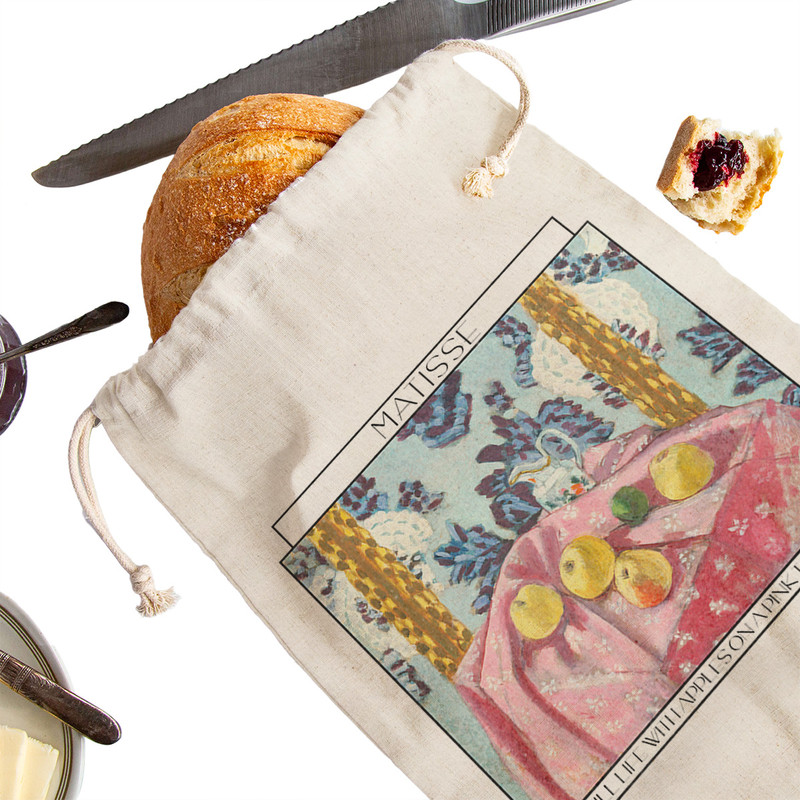 کیسه نان و سبزی ترمه طراحان ایده مدل اشیاء بی جان، سیب روی رومیزی صورتی از ماتیس کد art0659 - S