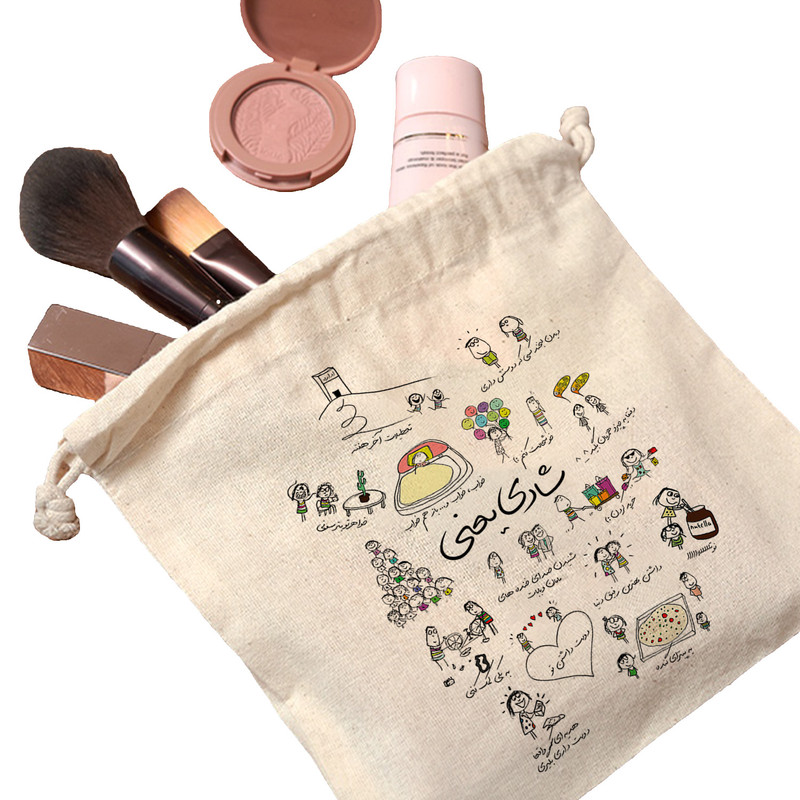 کیسه پارچه ای بند دار برای تقسیم بندی لوازم و نگهداری آن ها در کیف، یخچال و ... بهترین گزینه شما خواهد بود. اگر به دسته بندی لوازم به سبک و سلیقه خودتان علاقمند هستید، کیسه پارچه ای بند دار مناسب شماست. شما می توانید در این کیسه های بند دار، لوازم مختلفی از جمله لوازم التحریر، لوازم خیاطی، لوازم آرایشی و حتی خوراکی را نگهداری کنید و آن را در یخچال، کیف و یا کشوی کمد خود بگذارید و از گم شدن و یا خراب شدن آن ها جلوگیری کنید. این کیسهی بند دار، از پارچهی مرغوب و باکیفیتی تولید شده و به همین علت به سادگی خراب نخواهد شد. علاوه بر این شما تنها با کشیدن بند و بستن مهره چوبی می توانید این کیسه را باز و بسته کنید و از شر گره های کور کیسه های پلاستیکی خلاص شوید. شما می توانید این کیسهی پارچه ای را با طرح های بسیار زیبا و متنوع از فروشگاه ما یعنی ترمه گرافیک تهیه کنید.