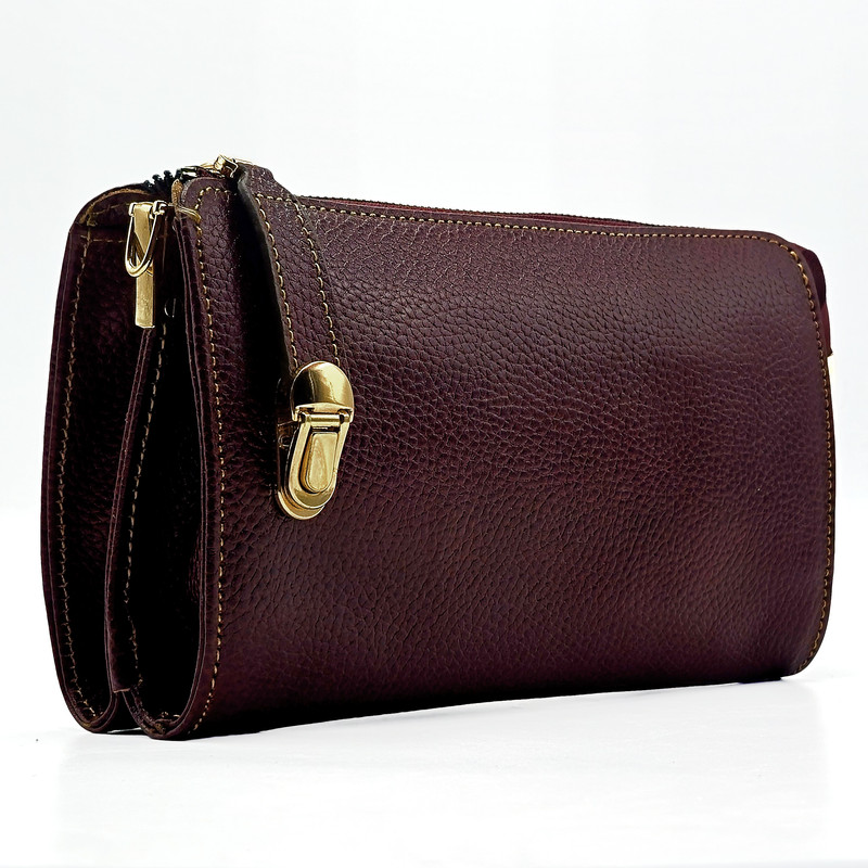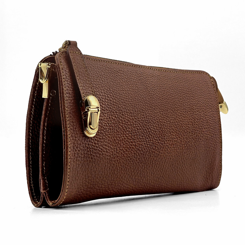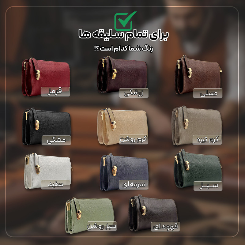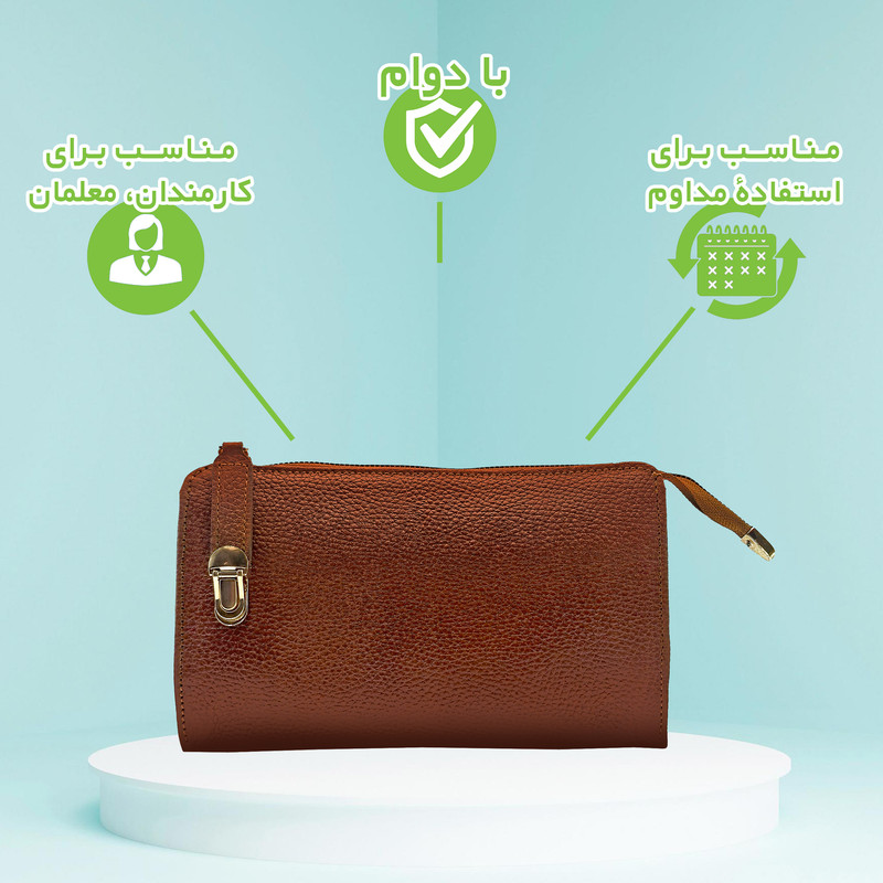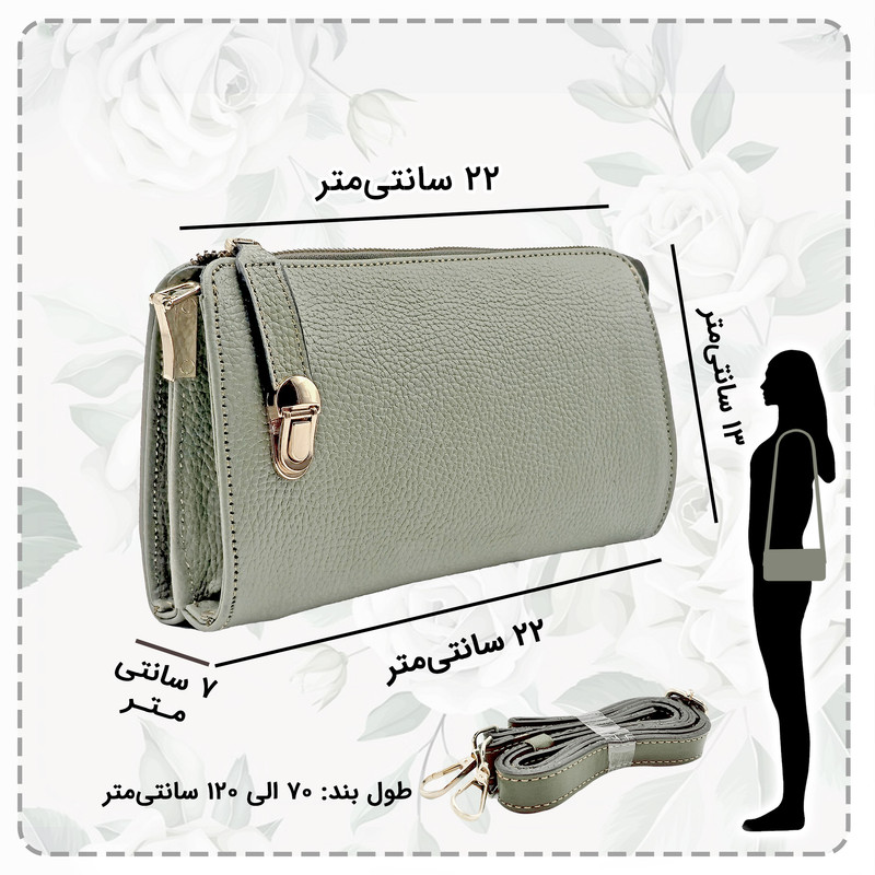 این کیف که از چرم صد درصد طبیعی و با استفاده از بهترین و بادوام ترین یراق آلات موجود در بازار و با هنر دست چرم کاران با تجربۀ این صنعت ساخته شده یک انتخاب ایده آل برای خانمهایی است که نیاز به یک کیف جمع و جور برای حمل لوازم ضروری روزانه مانند گوشی، لوازم آرایش، کارت بانکی، دسته کلید و ... دارند. این محصول برای استفادۀ مداومِ روزمره و حتی میمهانی ها یک گزینه عالی محسوب می شود. یک جیب بزرگ در کنار چندین جیب کوچک فضای بسیار خوبی برای تفکیک وسایل مورد نیازتان در دسترس شما قرار می دهد. این کیف در رنگبندی بسیار متنوع تولید شده و دارای زیپ بسیار نرم و روان، یک قفل فشاری و بند دستی است. همراه با این کیف یک بند قابل تنظیم دوشی همرنگ (از چرم طبیعی) نیز خدمتتان ارسال می گردد.