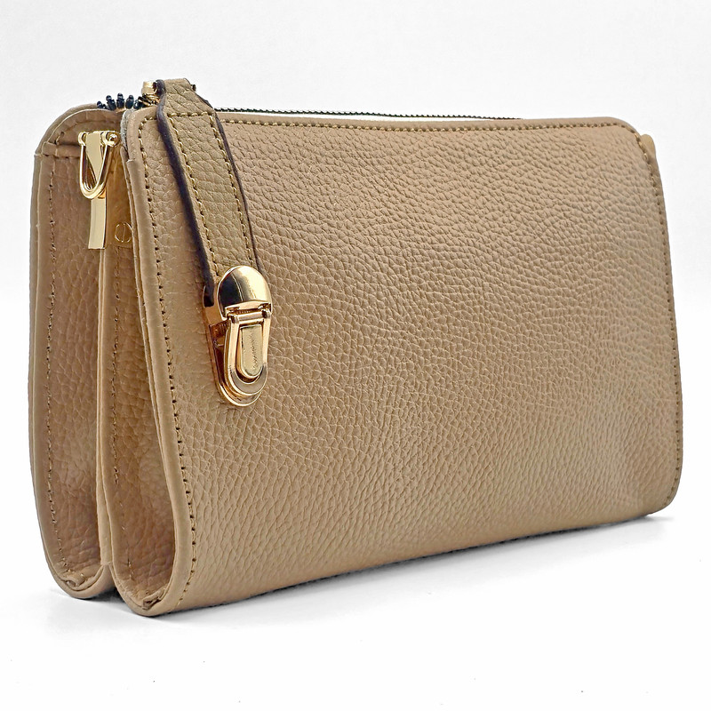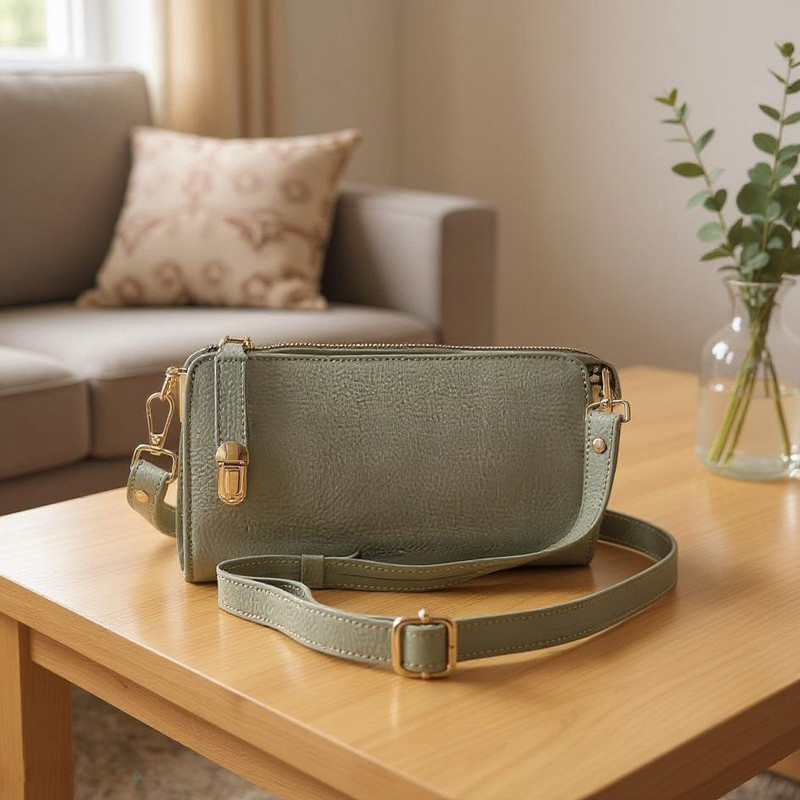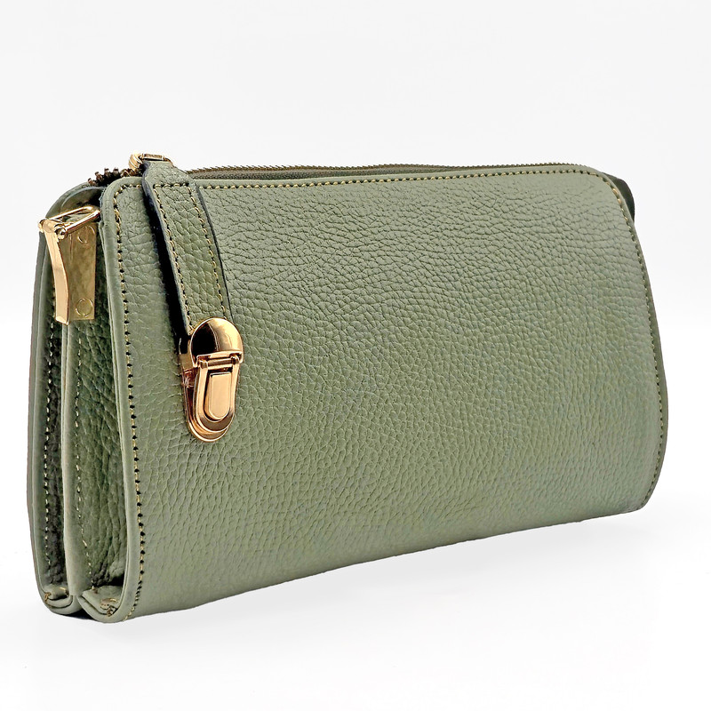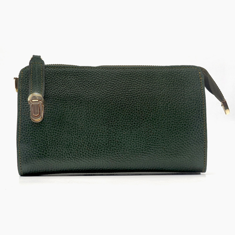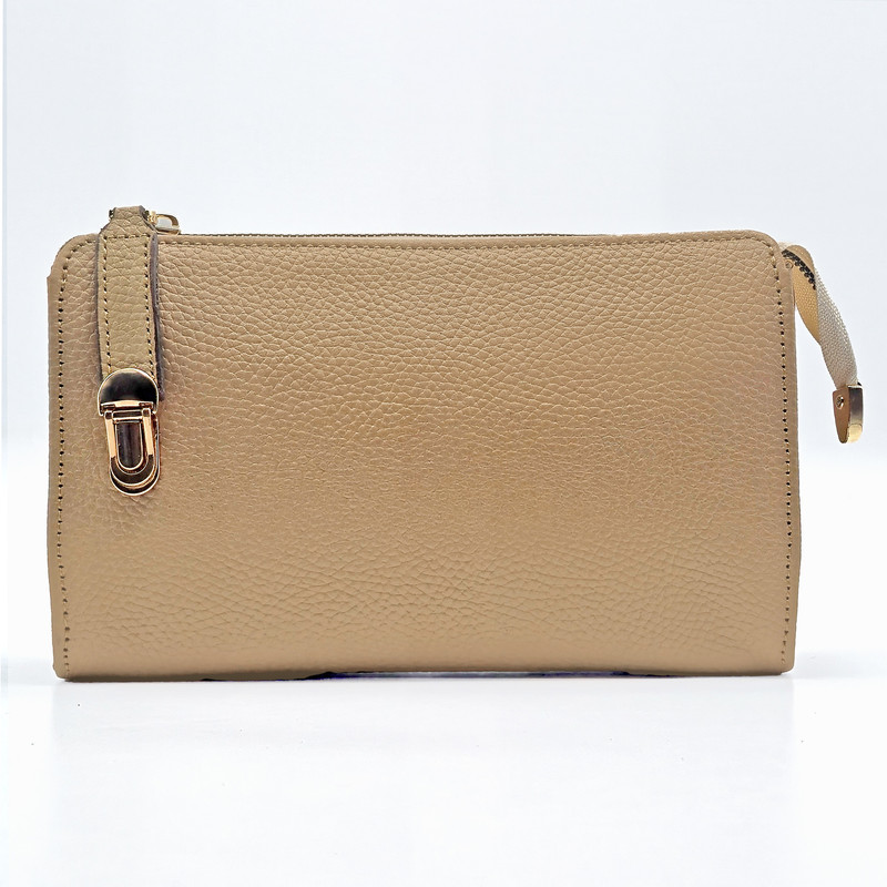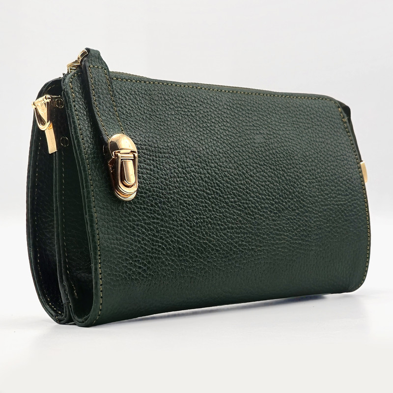 این کیف که از چرم صد درصد طبیعی و با استفاده از بهترین و بادوام ترین یراق آلات موجود در بازار و با هنر دست چرم کاران با تجربۀ این صنعت ساخته شده یک انتخاب ایده آل برای خانمهایی است که نیاز به یک کیف جمع و جور برای حمل لوازم ضروری روزانه مانند گوشی، لوازم آرایش، کارت بانکی، دسته کلید و ... دارند. این محصول برای استفادۀ مداومِ روزمره و حتی میمهانی ها یک گزینه عالی محسوب می شود. یک جیب بزرگ در کنار چندین جیب کوچک فضای بسیار خوبی برای تفکیک وسایل مورد نیازتان در دسترس شما قرار می دهد. این کیف در رنگبندی بسیار متنوع تولید شده و دارای زیپ بسیار نرم و روان، یک قفل فشاری و بند دستی است. همراه با این کیف یک بند قابل تنظیم دوشی همرنگ (از چرم طبیعی) نیز خدمتتان ارسال می گردد.