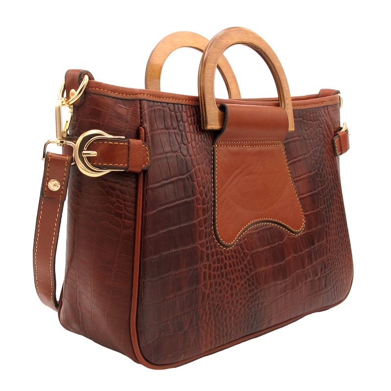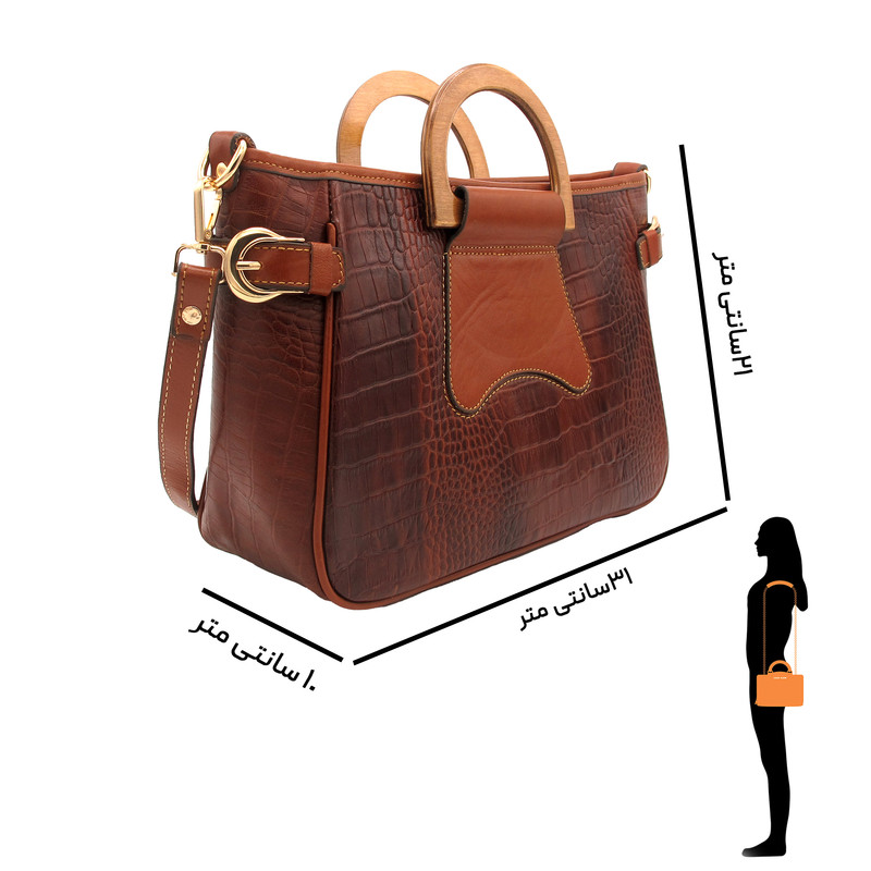 کیف دوشی زنانه چرم طبیعی مدل FTH144 با ترکیب چوب و چرم یک هارمونی بسیار زیبا ساخته که تاثیر به سزایی در استایل شما خواهد داشت. این کیف از چرم صددرصد طبیعی گاو ساخته شده و متریال به کار رفته در آن، اعم از زیپ و بند و چسب، همگی از مواد درجه یک هستند و ضامن کیفیت بالای این محصول هستند. این کیف دارای دو جیب بزرگ اصلی در داخل، ، یک جیب زیپ دار (میانی) داخلی، جاکارتی با دو محفظه و جا خودکاری با جای 3 خودکار است که در مجموع یک کیف جادار با قابلیت تفکیک بالا را در اختیار شما قرار می دهند. به طور کلی می توان گفت طول و عرض این کیف کمی بزرگتر ازیک ورق A4 است که سایز معقول برای استفاده های روزانه به شمار می رود.