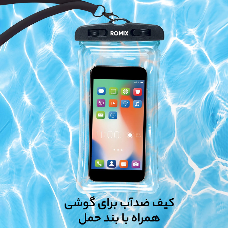 امروزه برخی شرکتهای تولیدکنندهی گوشیهای هوشمند، محصولات خود را به صورتی طراحی میکنند که در برابر نفوذ آب مقاوم هستند. این در حالی است که اکثر گوشیهای هوشمند موجود در بازار ضدآب نیستند و اگر در معرض آب قرار گیرند، بهاحتمال بسیار زیاد آسیب میبینند. کیف محافظ ضدآب تلفن همراه رومیکس یک محصول مناسب برای افرادی است که قصد دارند، مانع از آسیبرسیدن و ازکارافتادن گوشیهای هوشمندشان در زمان خیسشدن و نفوذ آب به داخل آن شوند. این کیف از پلاستیک نرم با رنگ شفاف تولید شده است؛ برایناساس، زمانی که گوشی موبایل درون کیف باشد، امکان استفاده از صفحهنمایش، دوربین و مکالمهی صوتی بدون نیاز به خارج کردن گوشی از آن وجود دارد. این کیف با طول 220 و عرض 100 میلیمتر برای تمام گوشیهای موبایل که سایز صفحهنمایش آنها تا 6.5 اینچ است ابعاد موبایل قابل استفاده طول 160 میلی متر و عرض 95 میلی متر میباشد، مناسب خواهد بود. روی این محصول دو قفل پلاستیکی بسیار محکم قرار دارد که از آن برای کیپ کردن درِ کیف استفاده میشود. همچنین یک بند گردنی برای آن در نظر گرفته شده که در صورت تمایل قابل جداشدن است. این کیف تا عمق 20متری در برابر نفوذ آب مقاوم است. این محصول از برند معتبر رومیکس بوده و کیفیت آن قابل مقایسه با محصولات بی نام و نشان بازار نیست