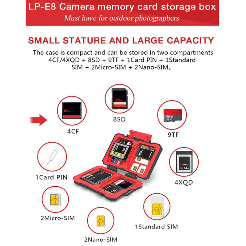 | سایر توضیحات | -----XQD :عدد4 -----CF:عدد4 -----SD:عدد8 -----TF:عدد12 -----SIM:عدد5 ----سوزن کارت 1عدد ----ضداب.ضد ضربه. ضد گردو غبار |