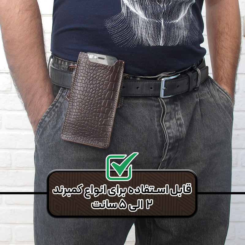 این کیف کمری موبایل مناسب برای تمام گوشی های کوچک تر از 7 اینچ است که از چرم صددرصد طبیعی ساخته شده است. این کیف کمری قابلیت اتصال به همه سایز کمربند را دارا است و از گوشی شما در برابر ضربات و خط و خش محافظت می کند.