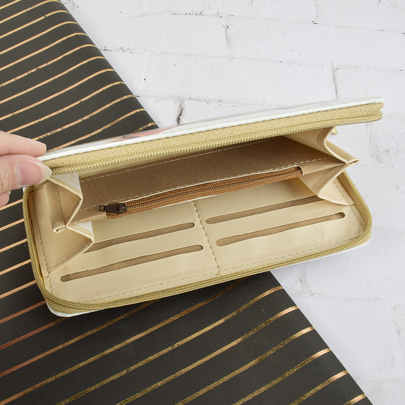 | جزئیات | محفظه برای قرار دادن پول و موبایل تعداد 4 شیار اختصاصی برای کارت بانکی دارای جیب زیپ دار جدا برای پول خرد چاپ با کیفیت و رنگ ثابت |