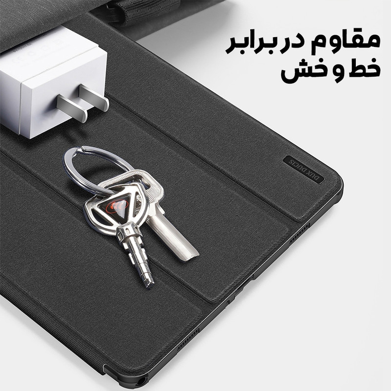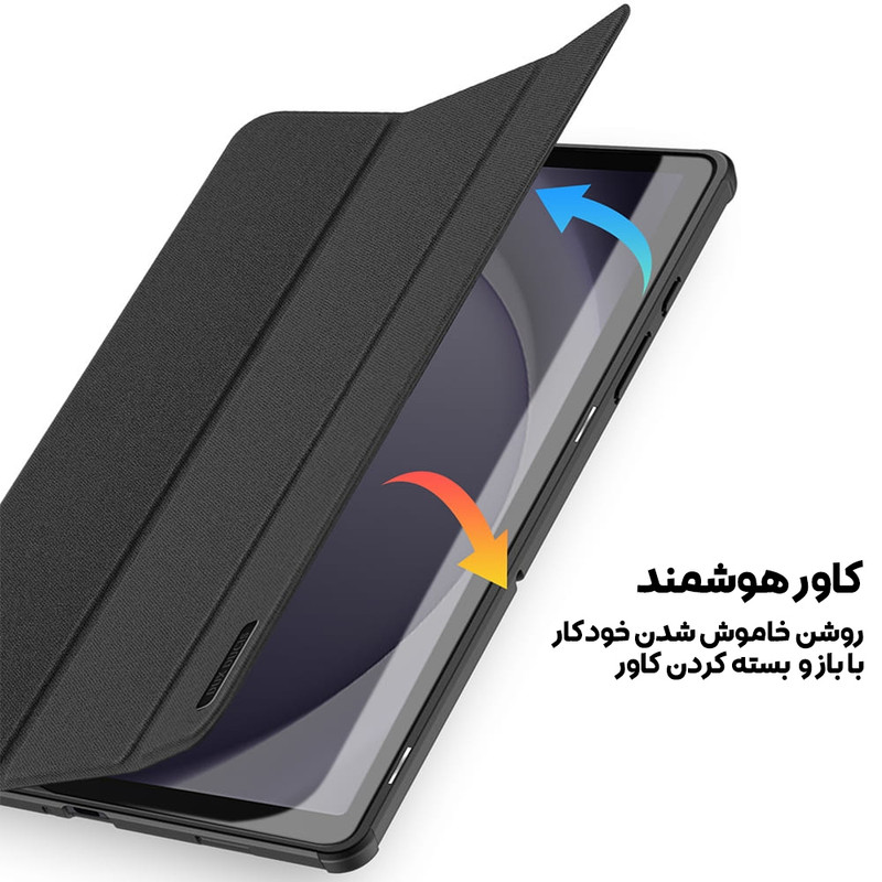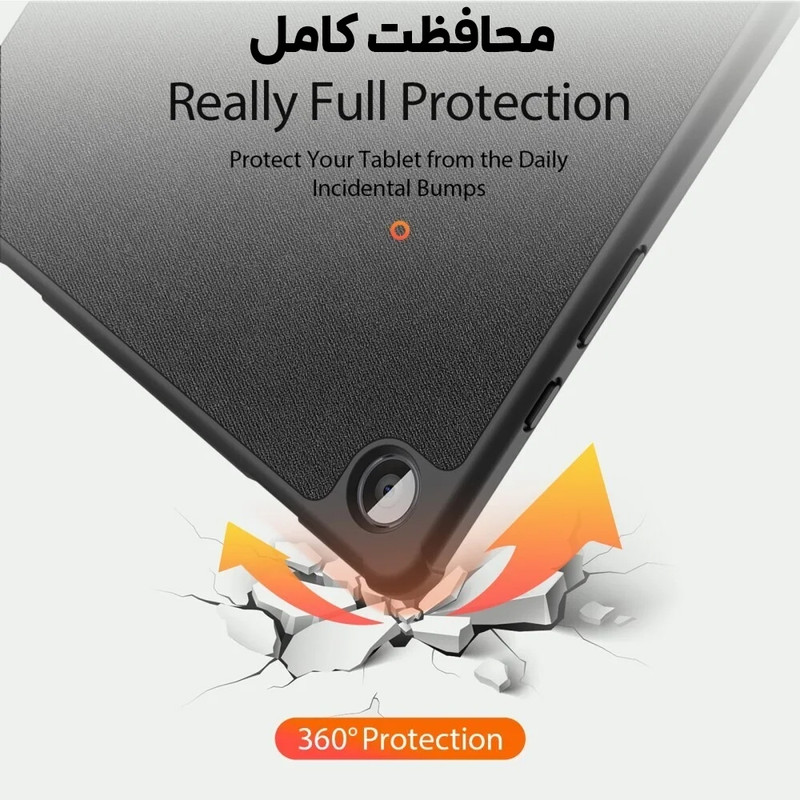 کیف مدل Domo محصول جدید بادیگارد مناسب برای تبلت Samsung Tab A9 Plus می باشد. این کیف یک محافظ کامل برای این تبلت می باشد. که علاوه بر زیبایی مقاومت و استحکام بسیار بالایی در برابر ضربه و زمین خوردن دارد. در این کیف بصورت هوشمند می باشد که با باز و بسته کردن در صفحه نمایش بصورت خودکار خاموش و روشن می شود. همچنین استند چند حالته این کیف امکان قرار گرفتن تبلت در زوایای مختلف را فراهم می کند.