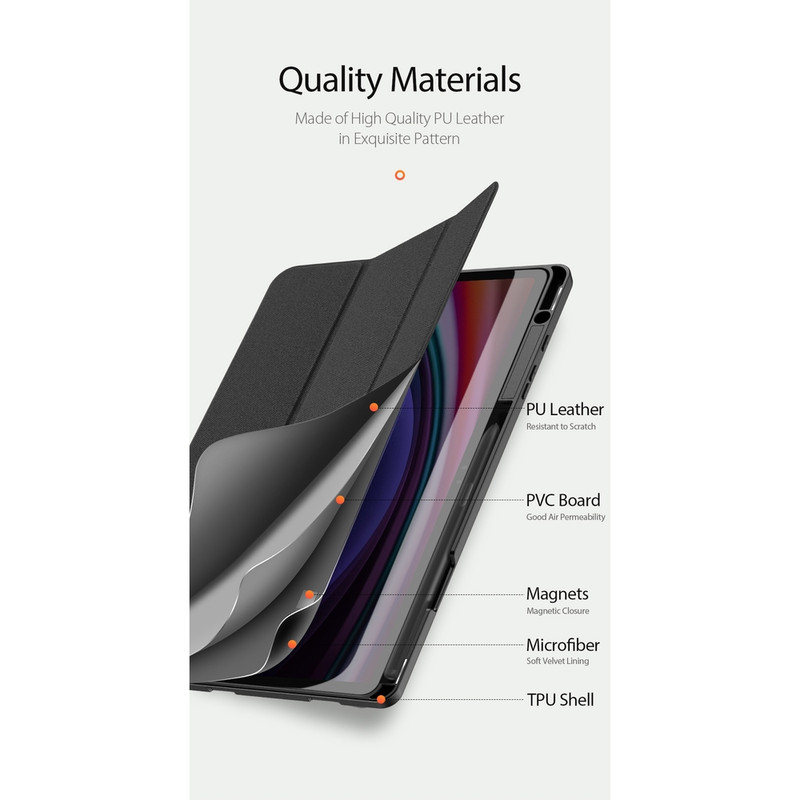 کیف مدل Domo محصول جدید بادیگارد مناسب برای تبلتSamsung S9 FE Plus , Samsung S9 Plus می باشد. این کیف یک محافظ کامل برای این تبلت می باشد. که علاوه بر زیبایی مقاومت و استحکام بسیار بالایی در برابر ضربه و زمین خوردن دارد. در این کیف بصورت هوشمند می باشد که با باز و بسته کردن در صفحه نمایش بصورت خودکار خاموش و روشن می شود. همچنین استند چند حالته این کیف امکان قرار گرفتن تبلت در زوایای مختلف را فراهم می کند.