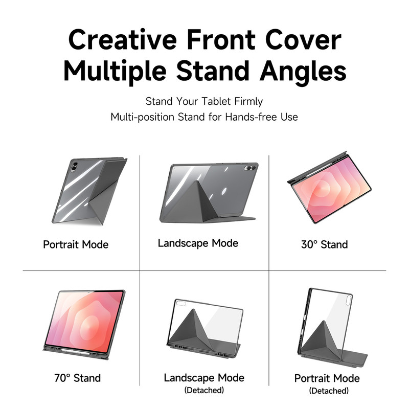 کیف کلاسوری بادیگارد مدل Magi برای تبلت Samsung S11 Ultra 14.6 inch ترکیبی از طراحی هوشمند، محافظت کامل و کاربری چندمنظوره را ارائه میدهد که آن را به یکی از بهترین گزینهها برای کاربران حرفهای و روزمره تبدیل کرده است. این کیف با بهرهگیری از ساختار سهلایه شامل لبههای نرم TPU، پشت شفاف سخت و روکش چرمی ضد اثر انگشت، هم زیبایی تبلت را حفظ میکند و هم از آن در برابر ضربه، خط و خش و سقوط محافظت مینماید. قابلیت "Smart Folio" باعث روشن و خاموش شدن خودکار صفحه با باز و بسته کردن درب کیف میشود، بدون نیاز به لمس دکمه پاور، که هم راحتی را افزایش میدهد و هم مصرف باتری را کاهش میدهد. طراحی ماژولار این کیف امکان جداسازی آسان کاور پشتی را فراهم کرده و میتوان آن را بهصورت مستقل استفاده کرد؛ همچنین اتصال مجدد آن با مکانیزم دقیق "Align & Push" انجام میشود که ترکیبی محکم و ایمن را تضمین میکند. از طرفی، قابلیت تنظیم زاویه در حالتهای مختلف ایستاده—اعم از عمودی، افقی، ۳۰ و ۷۰ درجه—تجربهای بینظیر برای تماشای فیلم، مطالعه یا تماس تصویری فراهم میآورد. این کیف نهتنها محافظی قدرتمند برای تبلت شماست، بلکه با طراحی خلاقانه و عملکرد چندگانه، به ابزاری کاربردی و شیک برای زندگی دیجیتال روزمره تبدیل میشود.