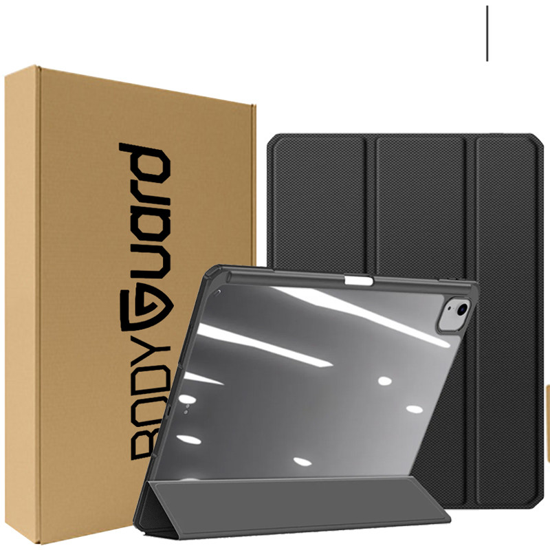 کیف مدل Toby محصول جدید بادیگارد مناسب برای تبلت iPad Air 13 inch می باشد. این کیف یک محافظ کامل برای این تبلت می باشد. که علاوه بر زیبایی مقاومت و استحکام بسیار بالایی در برابر ضربه و زمین خوردن دارد. در این کیف بصورت هوشمند می باشد که با باز و بسته کردن در صفحه نمایش بصورت خودکار خاموش و روشن می شود. درون کیف محل قرار گیری قلم وجود دارد. و همچنین برای زیبایی بیشتر پشت این کیف بصورت بی رنگ شفاف می باشد که باعث دیده شدن خود تبلت می شود. همچنین استند چند حالته این کیف امکان قرار گرفتن تبلت در زوایای مختلف را فراهم می کند.
