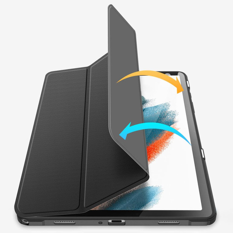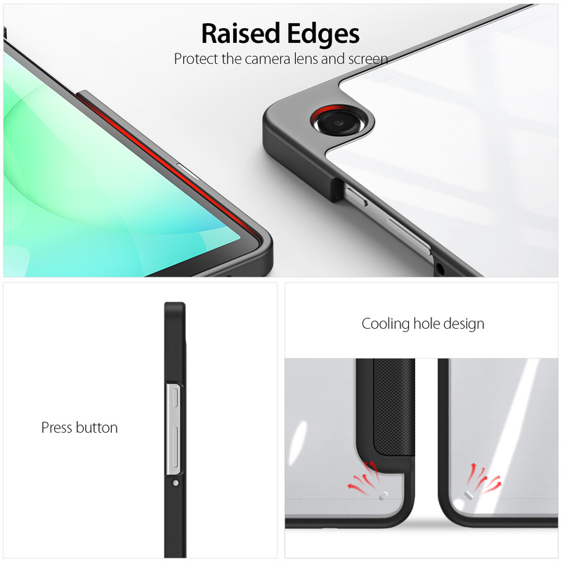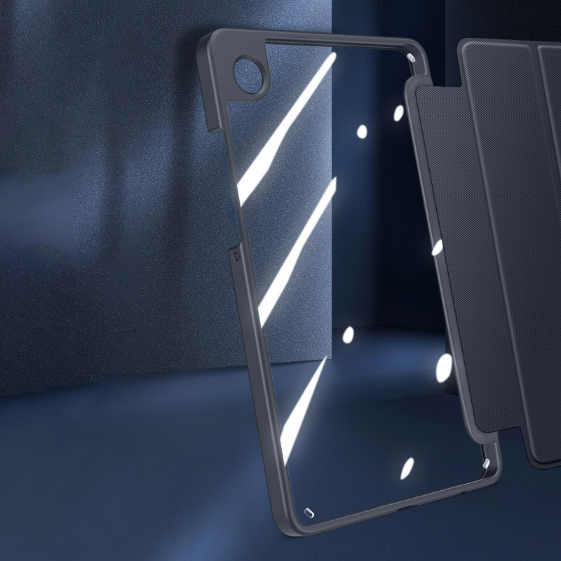 کیف محافظ بادیگارد مدل Toby، طراحیشده مخصوص تبلت Samsung Galaxy Tab A9 / A11 با ابعاد 8.7 اینچ، ترکیبی بینقص از زیبایی، دوام و کارایی را برای کاربران فراهم میسازد. این کیف با ساختاری هوشمندانه، نهتنها از تبلت در برابر ضربه، خط و خش و سقوط محافظت میکند، بلکه با قابلیتهای کاربردی مانند پشتیبانی از حالت خواب/بیداری خودکار (Auto Sleep/Wake)، تجربهای راحت و سریع را به ارمغان میآورد. طراحی سهتکه درب جلو امکان تبدیل کیف به پایه نگهدارنده در زوایای مختلف را فراهم کرده و کار با تبلت در حالت تایپ، مطالعه یا تماشای فیلم را آسانتر میسازد. بدنهی محکم و سبک وزن آن، بهخوبی تبلت را در بر گرفته و دسترسی کامل به دکمهها، درگاهها و دوربین را بدون محدودیت ممکن میسازد. همچنین طراحی پشت این کیف بهصورت شفاف انجام شده تا ظاهر اصلی و زیبای خود تبلت نمایان باشد.