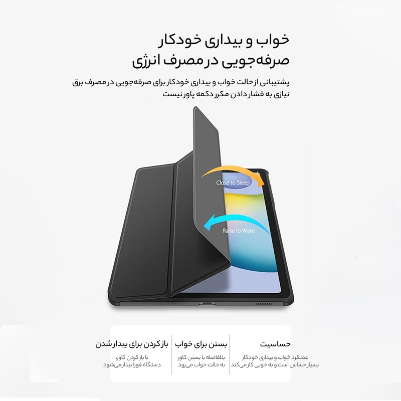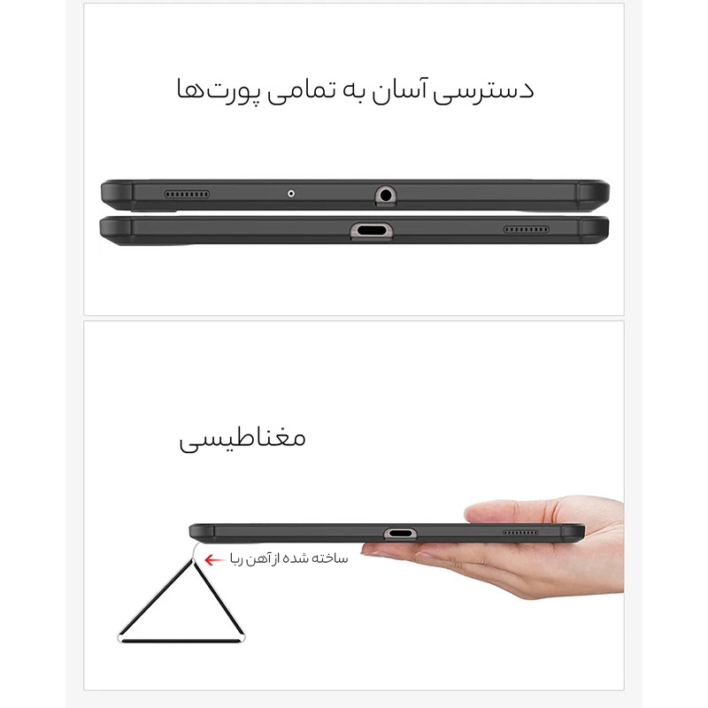 کیف مدل Toby محصول جدید بادیگارد مناسب برای تبلت Samsung S6 Lite می باشد. این کیف یک محافظ کامل برای این تبلت می باشد. که علاوه بر زیبایی مقاومت و استحکام بسیار بالایی در برابر ضربه و زمین خوردن دارد. در این کیف بصورت هوشمند می باشد که با باز و بسته کردن در صفحه نمایش بصورت خودکار خاموش و روشن می شود. درون کیف محل قرار گیری قلم وجود دارد. و همچنین برای زیبایی بیشتر پشت این کیف بصورت بی رنگ شفاف می باشد که باعث دیده شدن خود تبلت می شود. همچنین استند چند حالته این کیف امکان قرار گرفتن تبلت در زوایای مختلف را فراهم می کند.