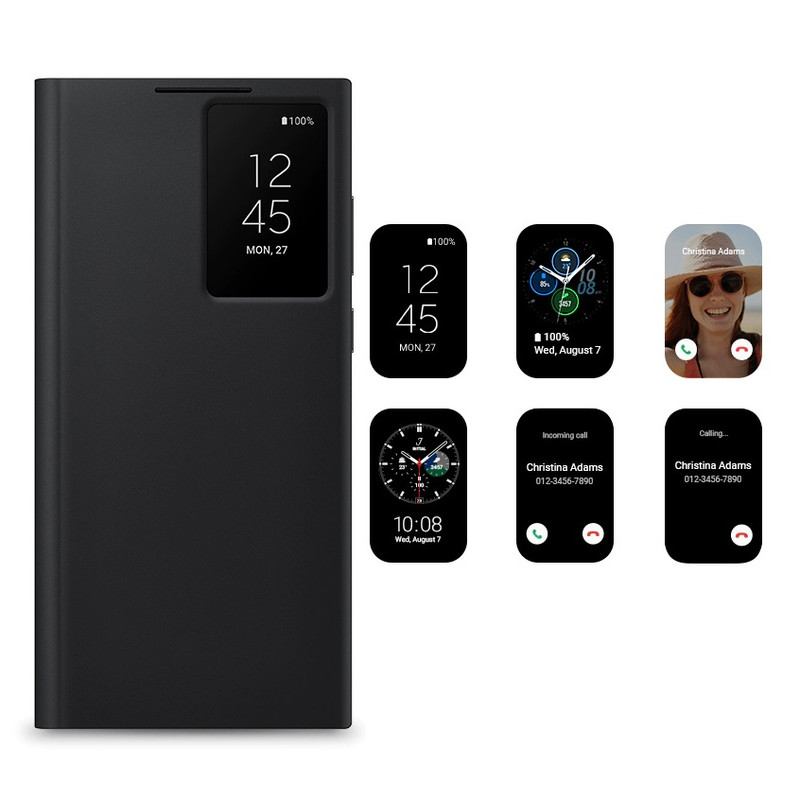 کیف هوشمند Samsung Galaxy S22 Ultra مدل Smart Clear View Cover با بهره گیری از سنسورهای ارجینال سامسونگ قابلیت کنترل تماسها، اعلانات و موزیک بدون نیاز به باز کردن در کیف را دارد