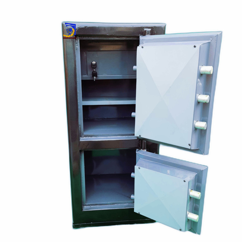 گاوصندوق ایران کاوه در ارتفاع 102 در عرض 40 و عمق 34 وزن 150 کیلوگرم ، قابلیت جا گیری پوشه ، مناسب املاک و منازل و نمایشگاه ها ، نسوز با رمز دیجیتال نمایشگر
