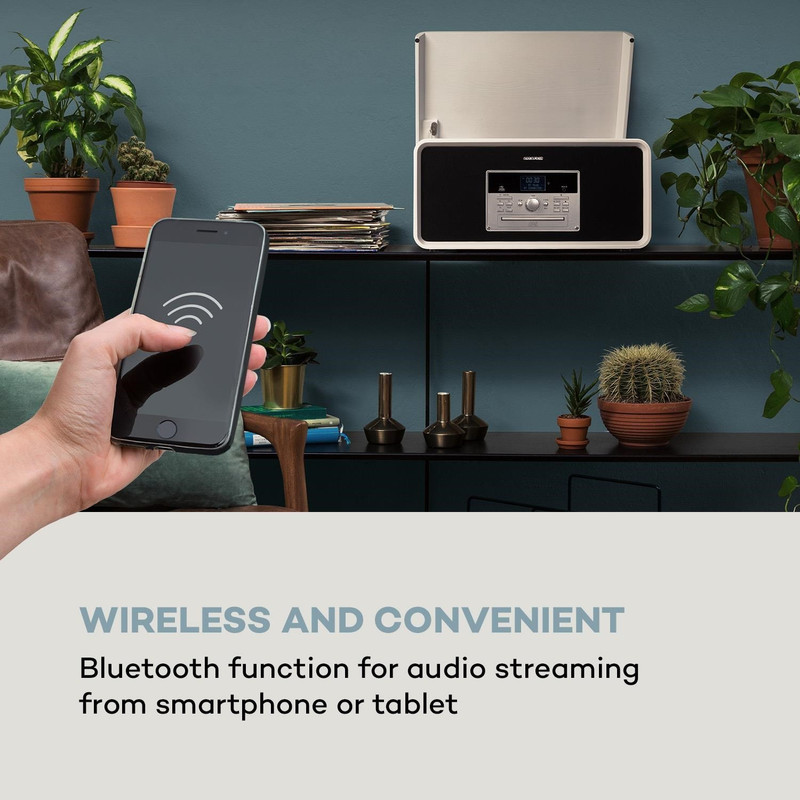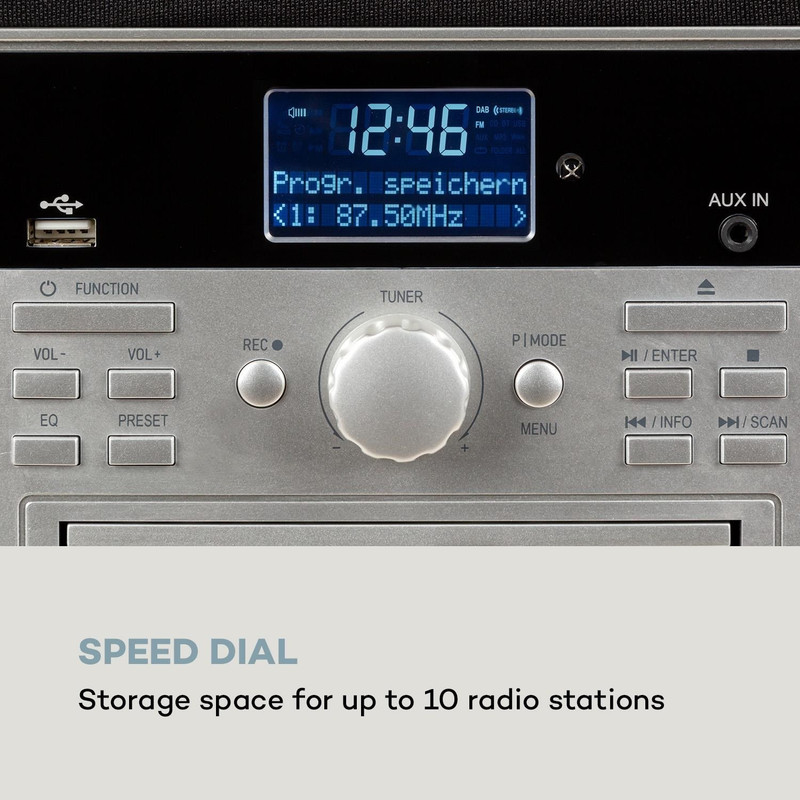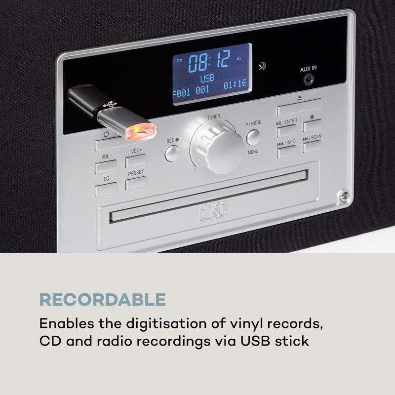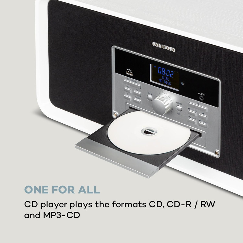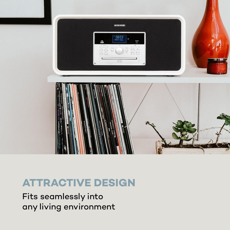 سایر توضیحات گرامافون auna مدل Bella Ann ،آنا بلا آن، سیستم استریو، گرامافون، رادیو، DAB+/FM، USB، بلوتوث، سفید ترکیب نوستالژی با فناوری مدرن ، گزینه‌های پخش متنوع ،قابلیت پخش سی‌دی، صفحه وینیل یا فایل‌های MP3 از طریق USB ، عملکرد بلوتوث برای پشتیبانی از پخش بی‌سیم موسیقی از تلفن‌های هوشمند، تبلت‌ها یا رایانه‌ها ، رادیوی دیجیتال یکپارچه با گیرنده DAB+/FM و 10 ایستگاه از پیش تنظیم شده ، امکان ذخیره 99 آهنگ MP3 و 20 عنوان سی‌دی توضیحات: Auna Bella Ann، سیستم استریو، گرامافون، رادیو، DAB+/FM، USB، بلوتوث، سفید بهترین‌های گذشته و آینده: سیستم استریو Auna Bella Ann نوستالژی را با فناوری مدرن ترکیب می‌کند. این سیستم گزینه‌های پخش متنوعی را ارائه می‌دهد و با طراحی ساده خود شما را تحت تأثیر قرار می‌دهد. با سیستم استریو Bella Ann، شما به طیف گسترده‌ای از گزینه‌های پخش موسیقی مجهز هستید. چه سی‌دی، چه صفحه وینیل یا فایل‌های MP3 از طریق USB، سیستم جمع و جور Auna برای همه فرمت‌ها آماده است. عملکرد بلوتوث امکان پخش بی‌سیم موسیقی از تلفن‌های هوشمند، تبلت‌ها یا رایانه‌ها را فراهم می‌کند. رادیوی دیجیتال یکپارچه با دریافت DAB+/FM و 10 ایستگاه از پیش تنظیم شده، بسته کامل ویژگی‌ها را تکمیل می‌کند. گرامافون داخلی به سوزن سرامیکی اجازه می‌دهد تا با سرعت 33، 45 یا 78 دور در دقیقه روی صفحه‌های وینیل بچرخد. علاوه بر این، Bella Ann می‌تواند 99 آهنگ MP3 و 20 عنوان سی‌دی را در حافظه پنهان ذخیره کند، بنابراین همیشه آهنگ‌های مورد علاقه خود را در دسترس دارید. به لطف عملکرد ضبط USB کاربردی، می‌توانید موسیقی را از روی صفحه گرامافون، سی‌دی یا رادیو ضبط کنید و آنها را به راحتی دیجیتالی کنید. ریموت کنترل ارائه شده به شما امکان کنترل کامل بر تمام عملکردها را از روی مبل راحتی‌تان می‌دهد. سیستم استریوی Bella Ann از برند Auna به لطف طراحی ساده‌اش به راحتی با محیط زندگی شما هماهنگ می‌شود و با عملکردهای متنوع خود شما را شگفت‌زده خواهد کرد. این محصول Auna Bella Ann، سیستم استریو، گرامافون، رادیو، DAB+/FM، USB، بلوتوث، ارائه می‌دهند . می‌توانید نظرات مربوط به Auna Bella Ann، سیستم استریو، گرامافون، رادیو، DAB+/FM، USB، بلوتوث است . • صفحه گرامافون با سرعت 33/45/78 دور در دقیقه • رادیو DAB+/FM • پخش‌کننده سی‌دی سازگار با فرمت‌های CD، CD-R/RW و MP3 • بلوتوث • پورت USB • ورودی AUX 3.5 میلی‌متری برای هدفون • 2 بلندگوی 10 وات RMS • پایه‌های لاستیکی ضد لغزش • کنترل از راه دور شامل (باتری سلولی دکمه‌ای CR2025 (3V) شامل نمی‌شود) • منبع تغذیه: 230 ولت ~ | 50 هرتز