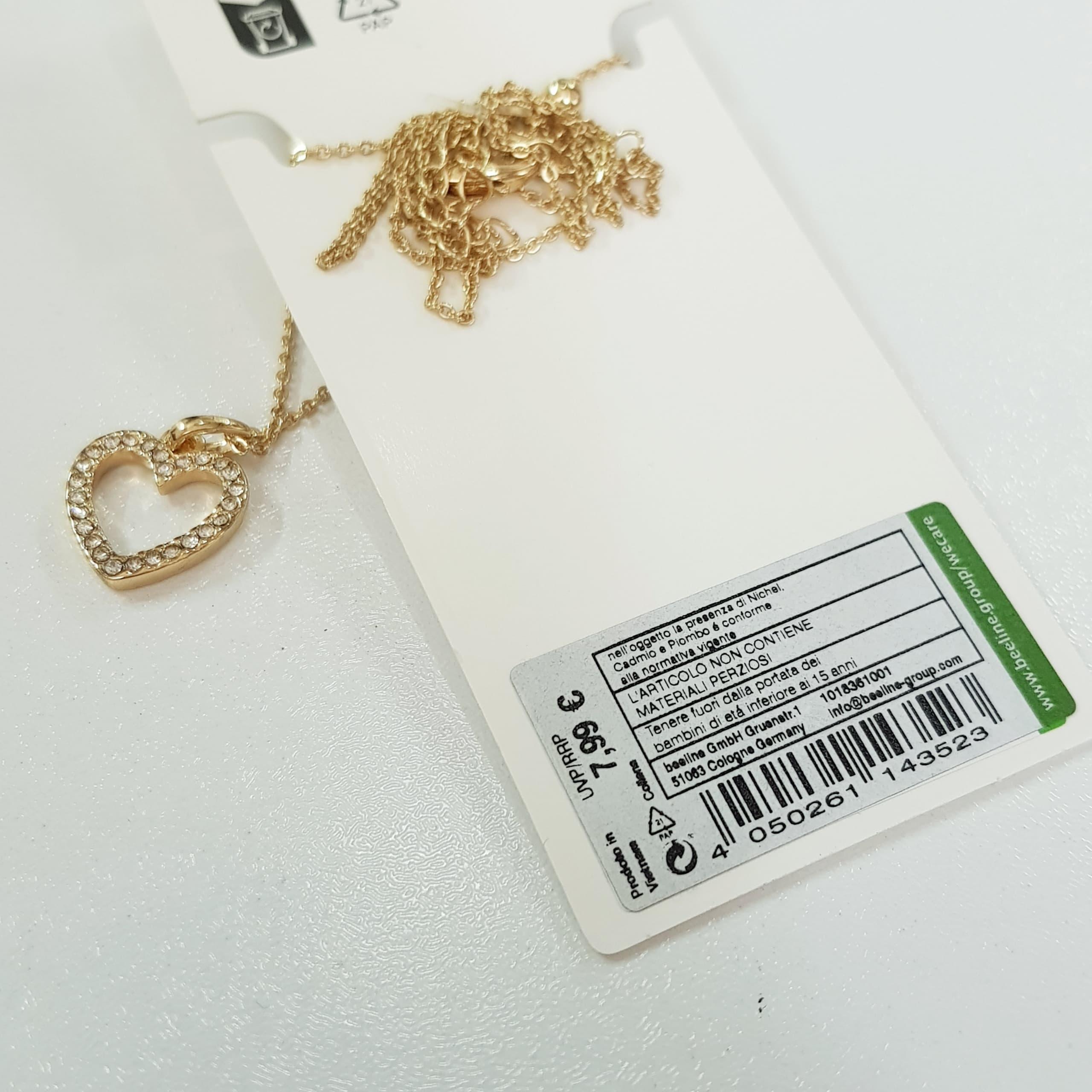 گردنبند آویز قلب طلایی نگین دار ، بسیار زیبا و ظریف رنگ ثابت و ضد حساسیت برند Accessories تحت لیسانس آلمان ارسال با پست پیشتاز به سراسر کشور