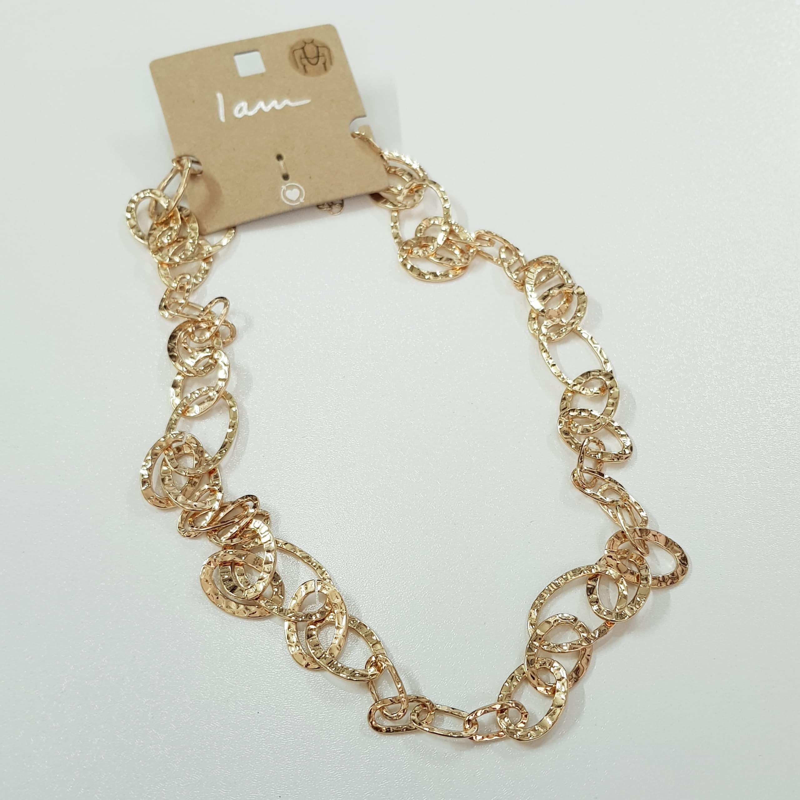 گردنبند رولباسی طلایی زنجیر درشت طرح چکش کاری ، بسیار ترند و زیبا ، زنجیر بلند ضد حساسیت برند iam تحت لیسانس آلمان