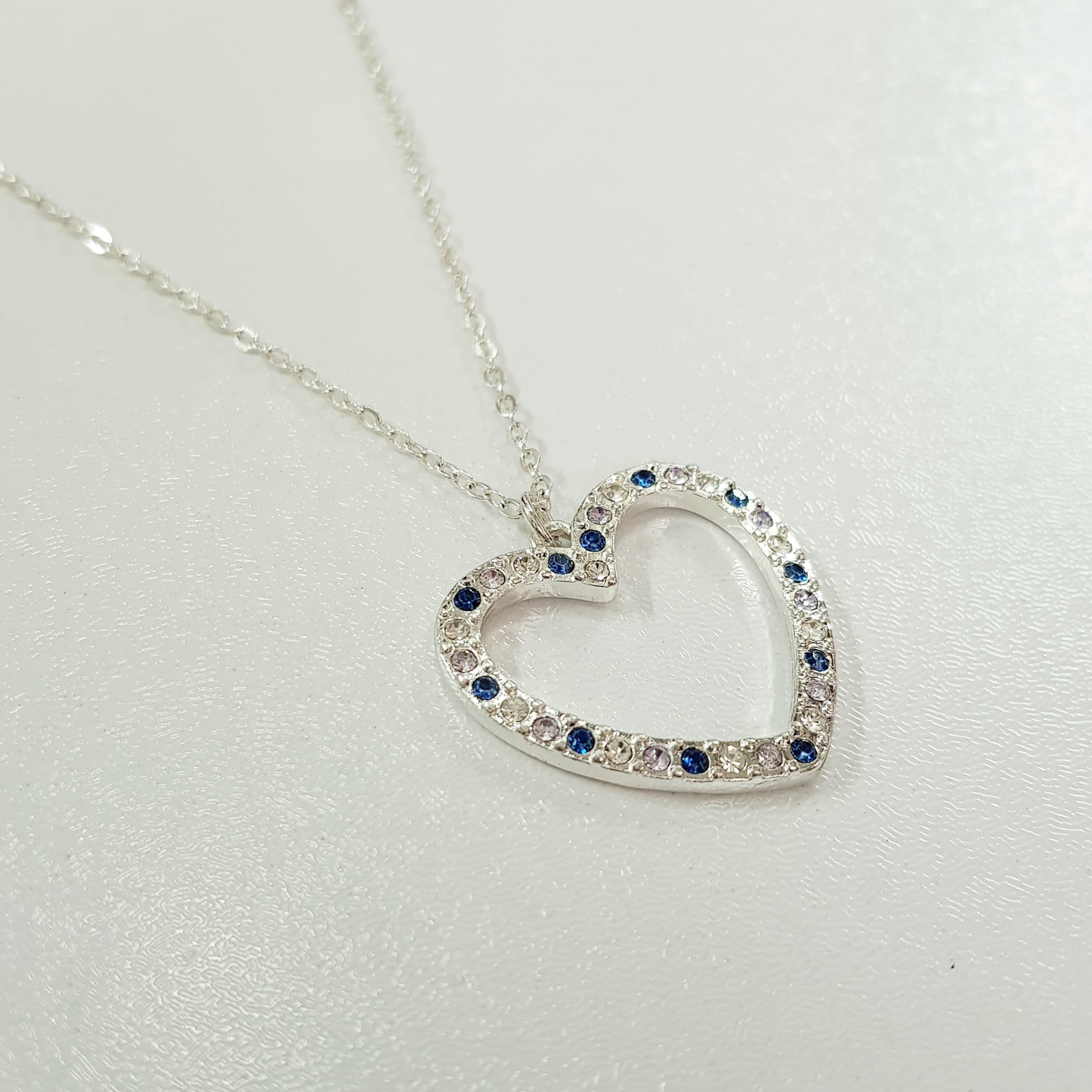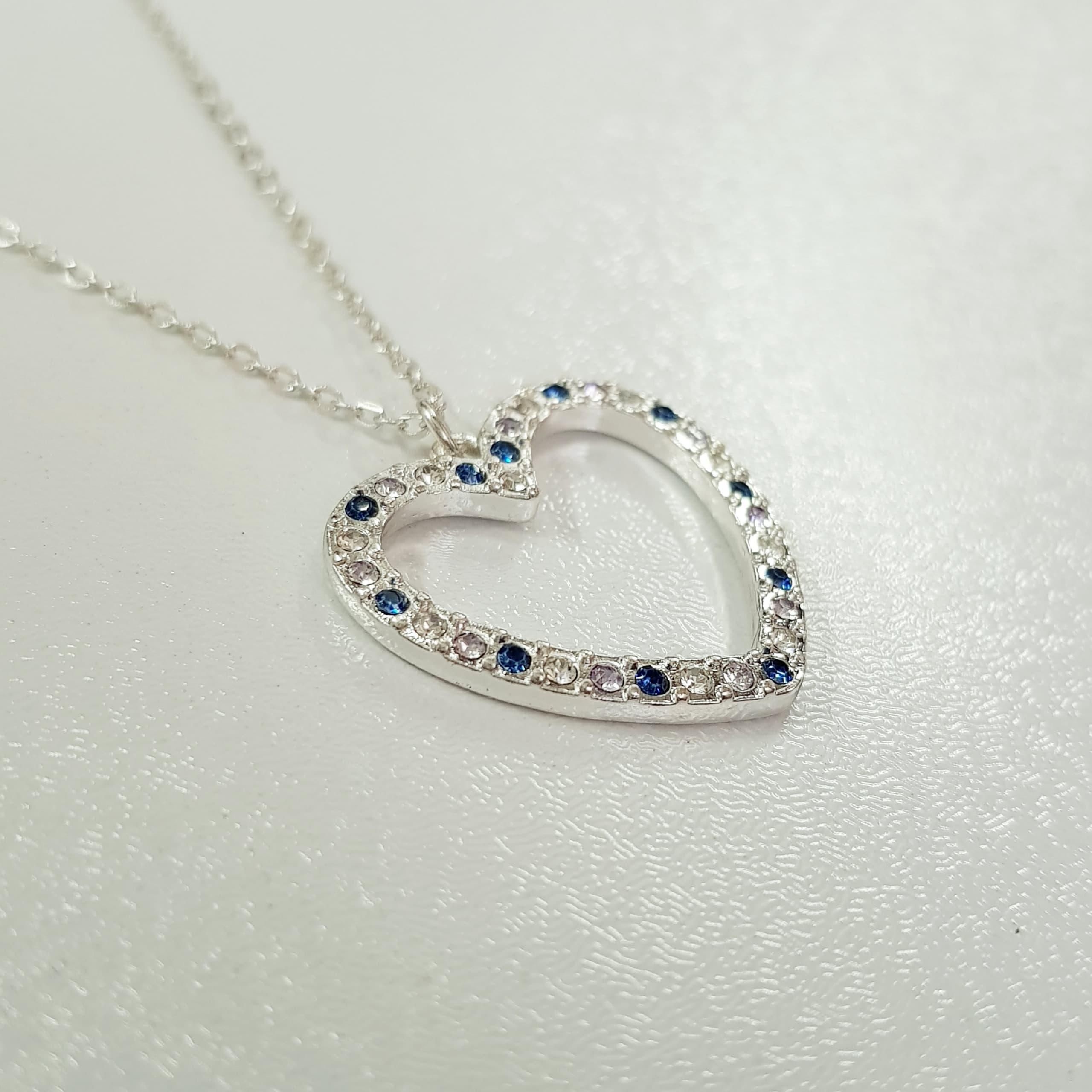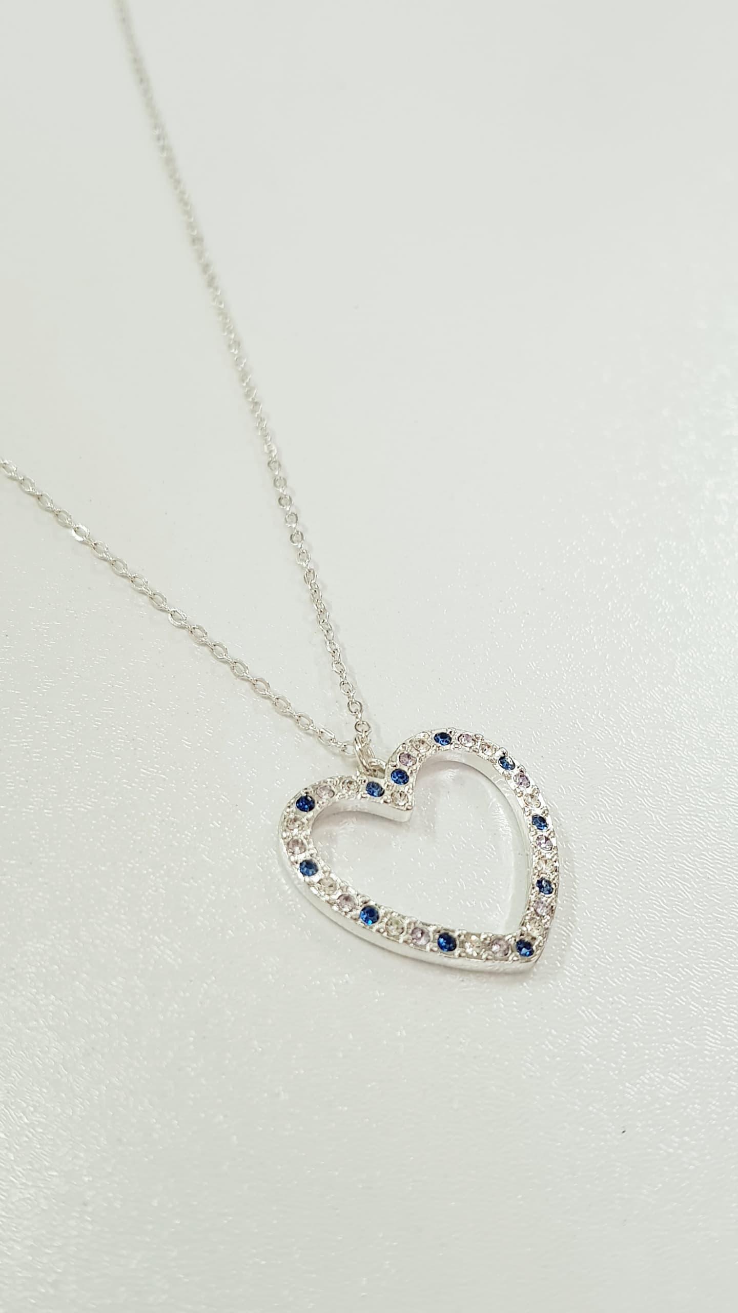 گردنبند رولباسی نقره ای آویز قلب نگین دار ، زنجیر بلند ، بسیار زیبا و ترند ضد حساسیت برند Accessories تحت لیسانس آلمان