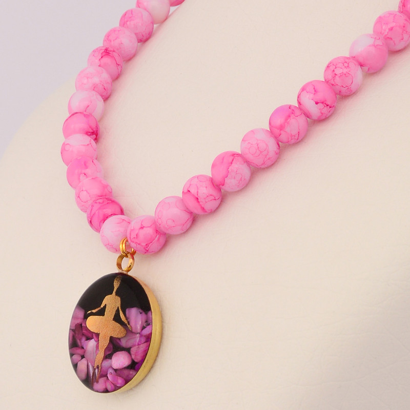اگر بهدنبال گردنبندی هستید که لطافت، ظرافت و حس رهایی را یکجا به شما هدیه دهد، این مدل با پلاک ظریف رقص باله و مهرههای دلنشین اونیکس صورتی، گزینهای بینظیر است. نماد بالرین با روکش طلا و پوشش شفاف رزینی، در برابر خطوخش و تغییر رنگ کاملاً مقاوم بوده و درخشش خود را در طول زمان حفظ میکند. همچنین این گردنبند از متریال ضدحساسیت تهیه شده و برای استفاده روزمره یا هدیه دادن کاملاً ایدهآل است.