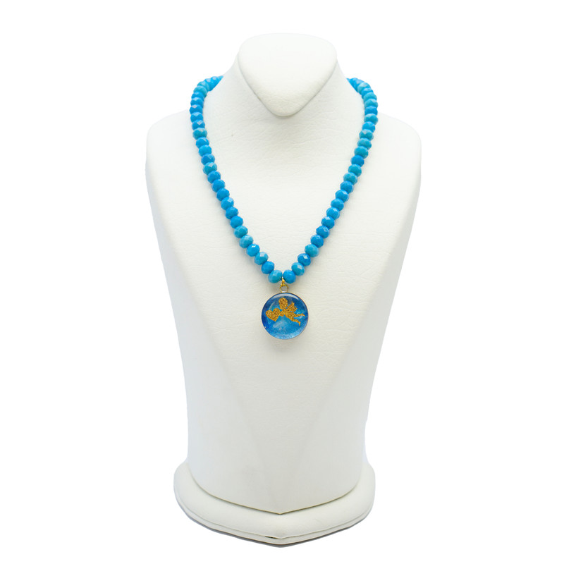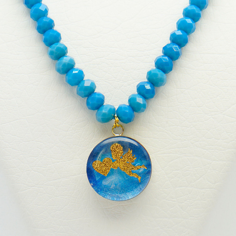 این گردنبند زیبا با ترکیب نماد احساسی قلب و فرشته، در کنار سنگ‌های آرام‌بخش اونیکس آبی، انتخابی خاص برای بانوانی‌ست که به نمادهای معنوی و احساسی علاقه دارند. پلاک طلایی با طراحی فرشته و قلب، با روکشی مقاوم از طلا و پوششی از رزین براق محافظت شده است که جلوه‌ای ماندگار و درخشان به آن می‌بخشد. فلزات به‌کاررفته در این گردنبند ضدحساسیت هستند و در برابر رطوبت و تعریق تغییر رنگ نمی‌دهند. مناسب برای استفاده روزمره یا هدیه‌ای احساسی و ارزشمند.