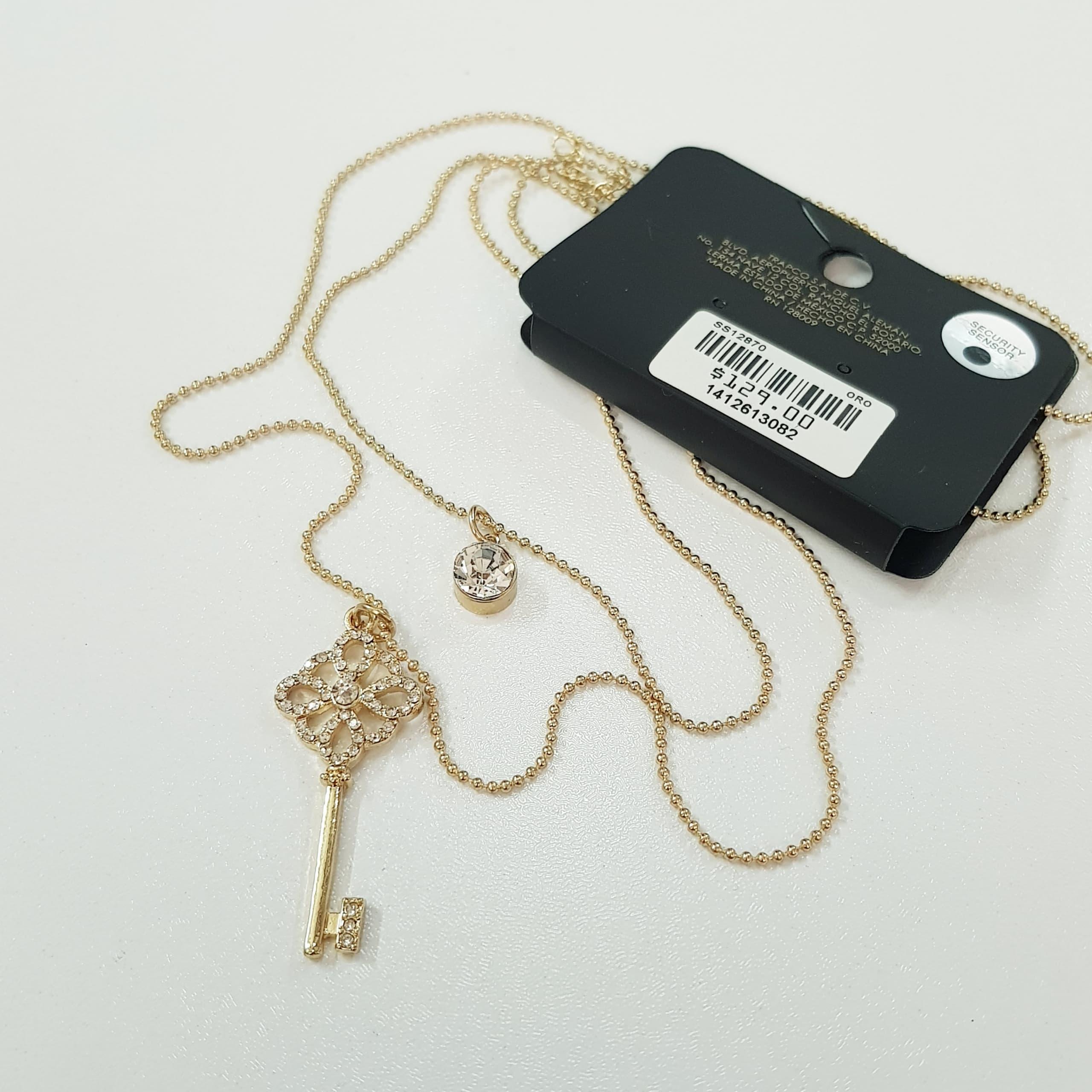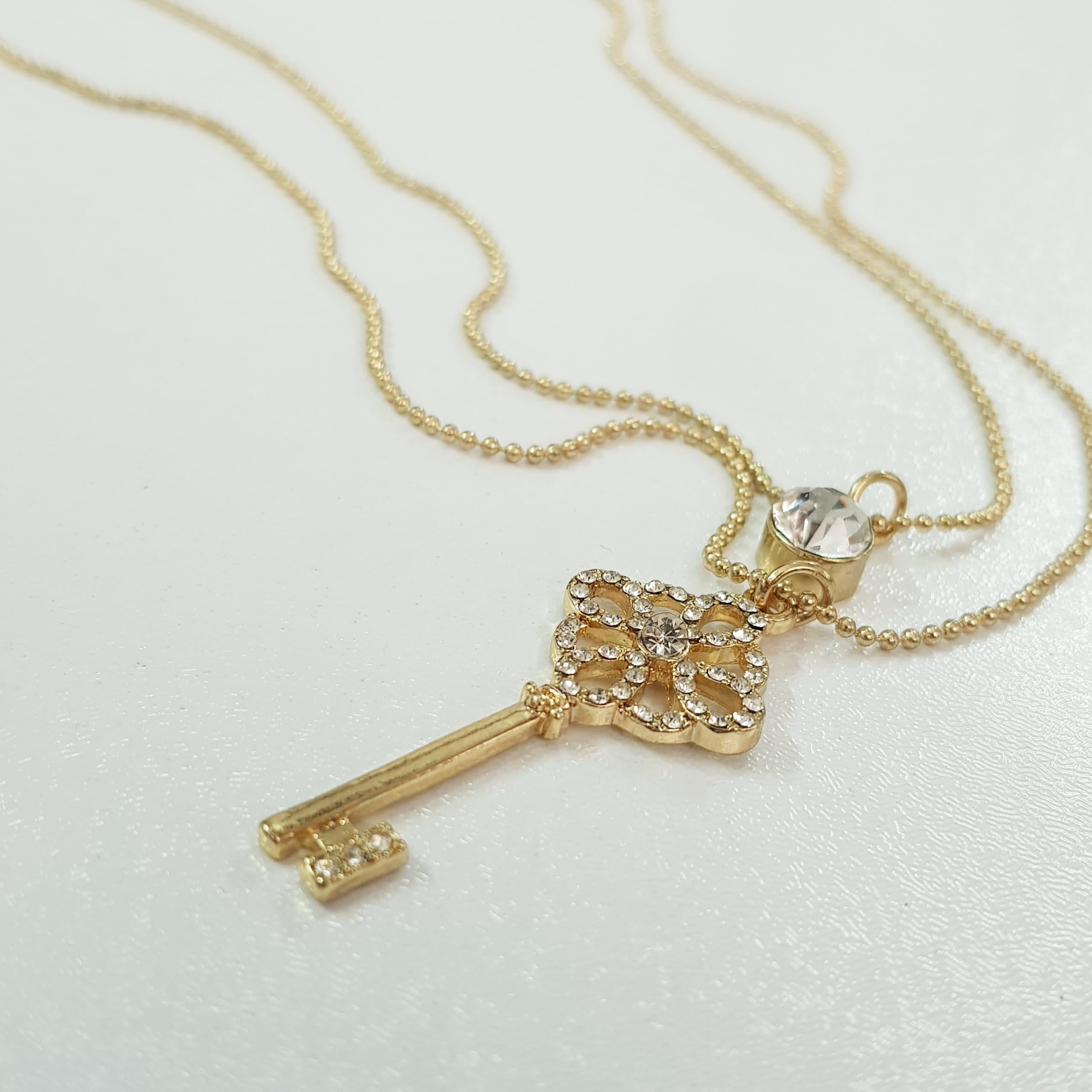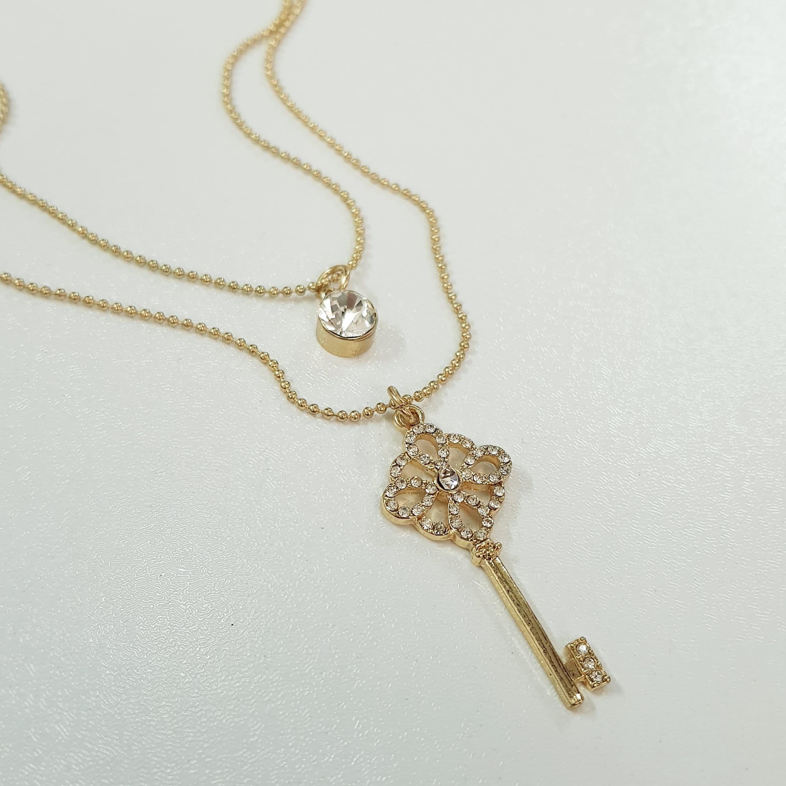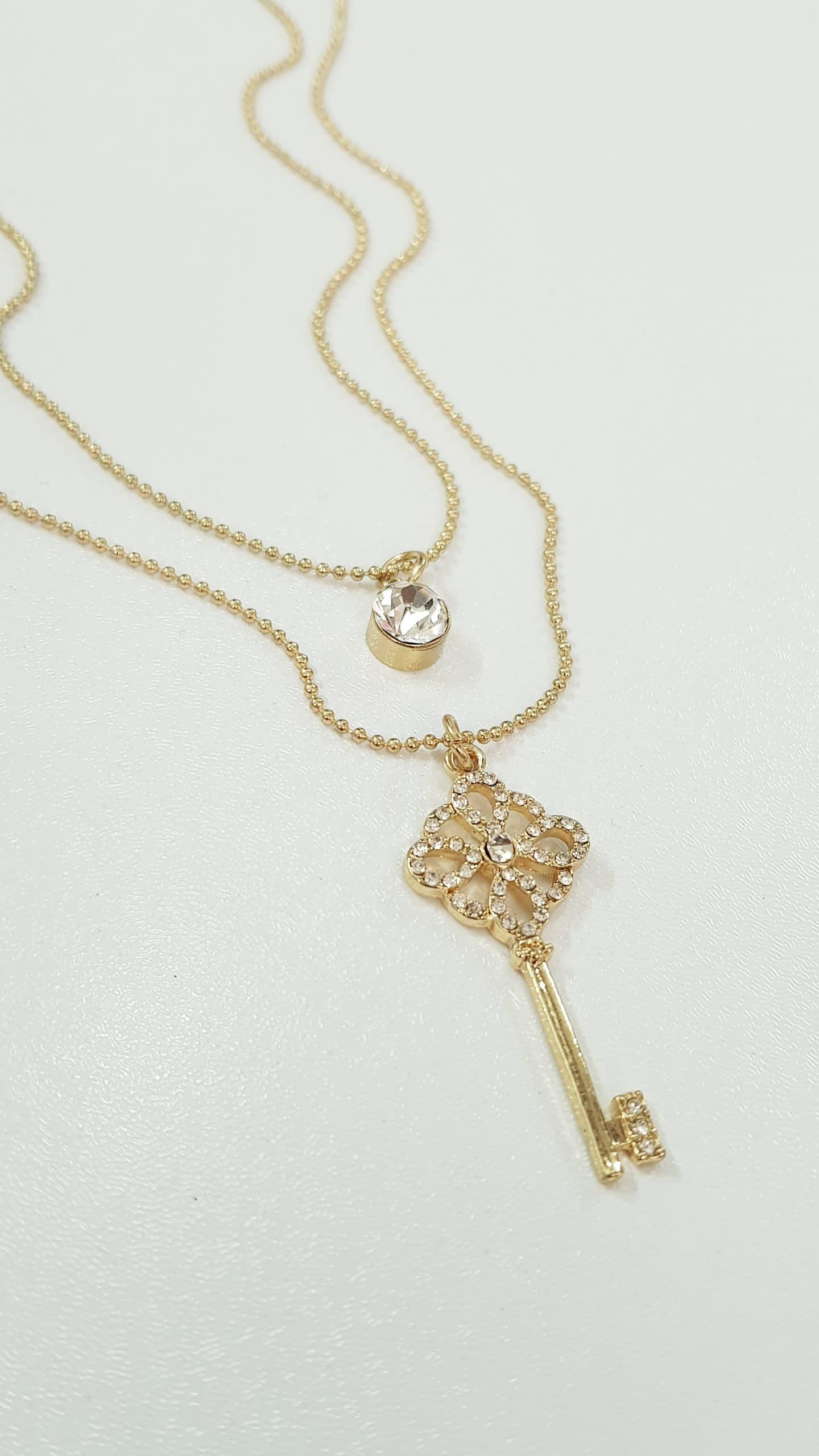 گردنبند طلایی دو ردیف آویز کلید نگین دار ، فوق العاده زیبا و درخشان