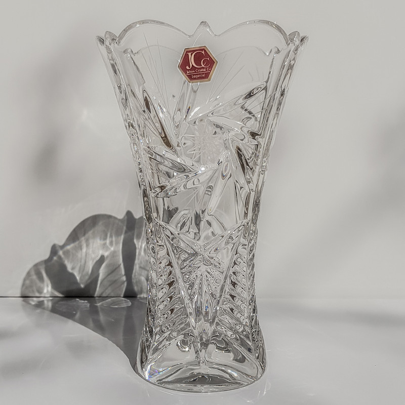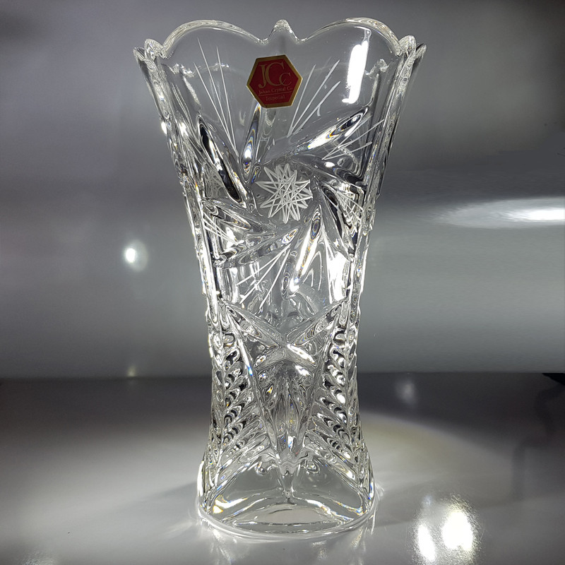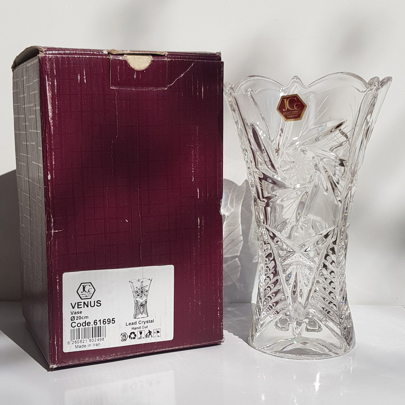 گلدان مارک جهان کریستال Jcc هست . مدل ونوس می باشد . jcc مارکی شناخته شده است . شفافیت خوبی دارد . گلدان ممکن است در عکسها بزرگتر یا کوچکتر از اندازه واقعی به نظر آید ، حتما وزن و ابعاد بررسی شود . وزن و وزن و ابعاد حدودا هست . امیدوارم از خرید خود لذت ببرید و راضی باشید .