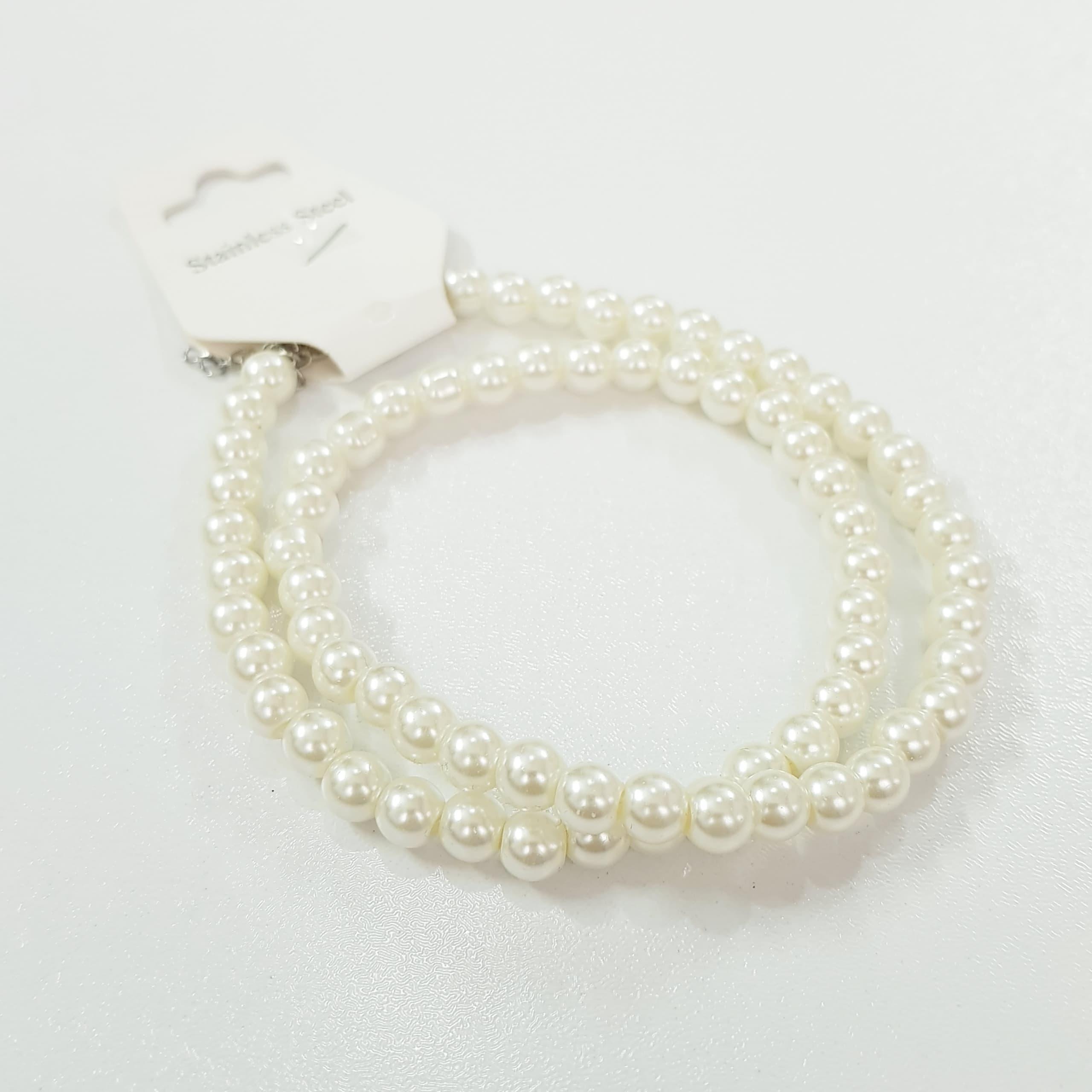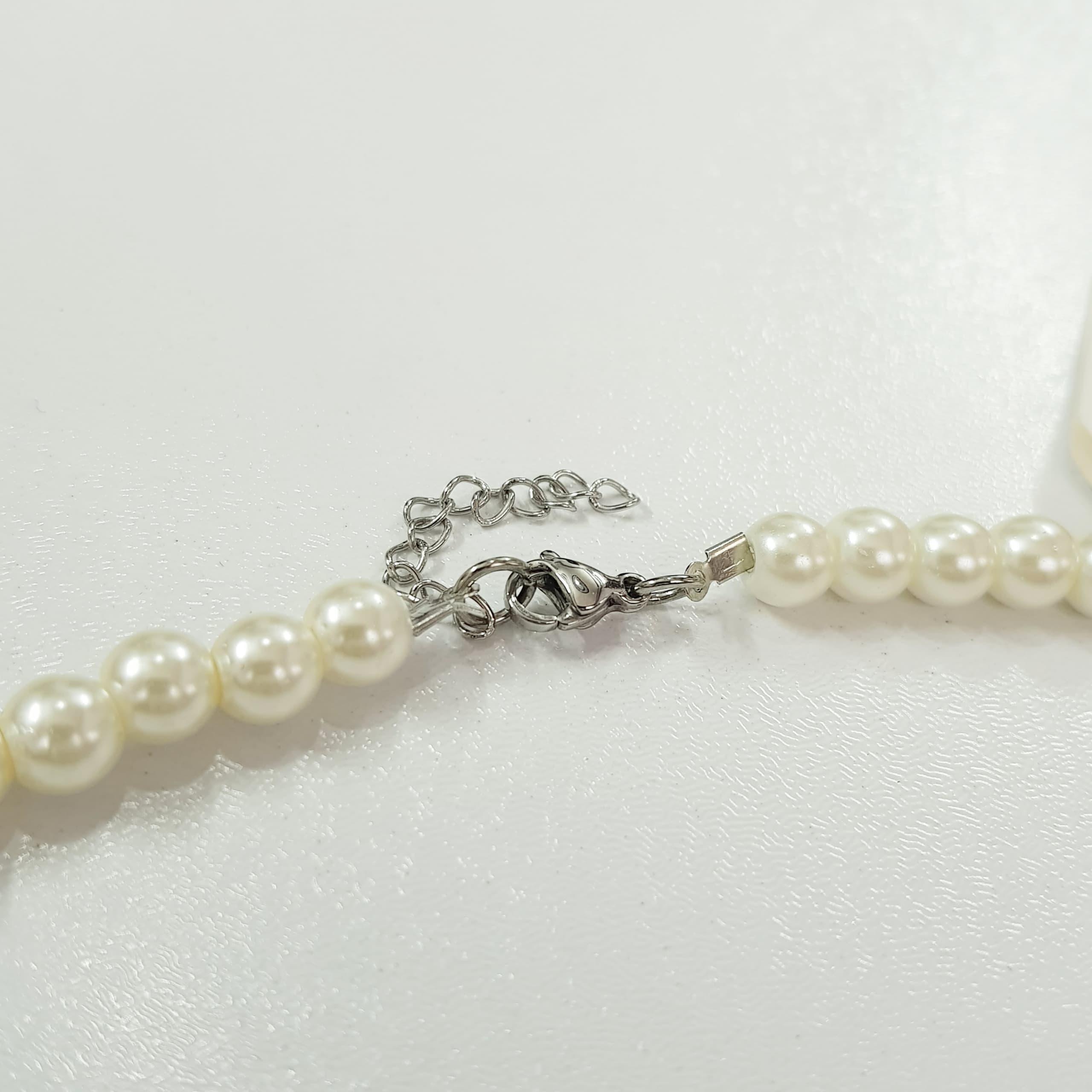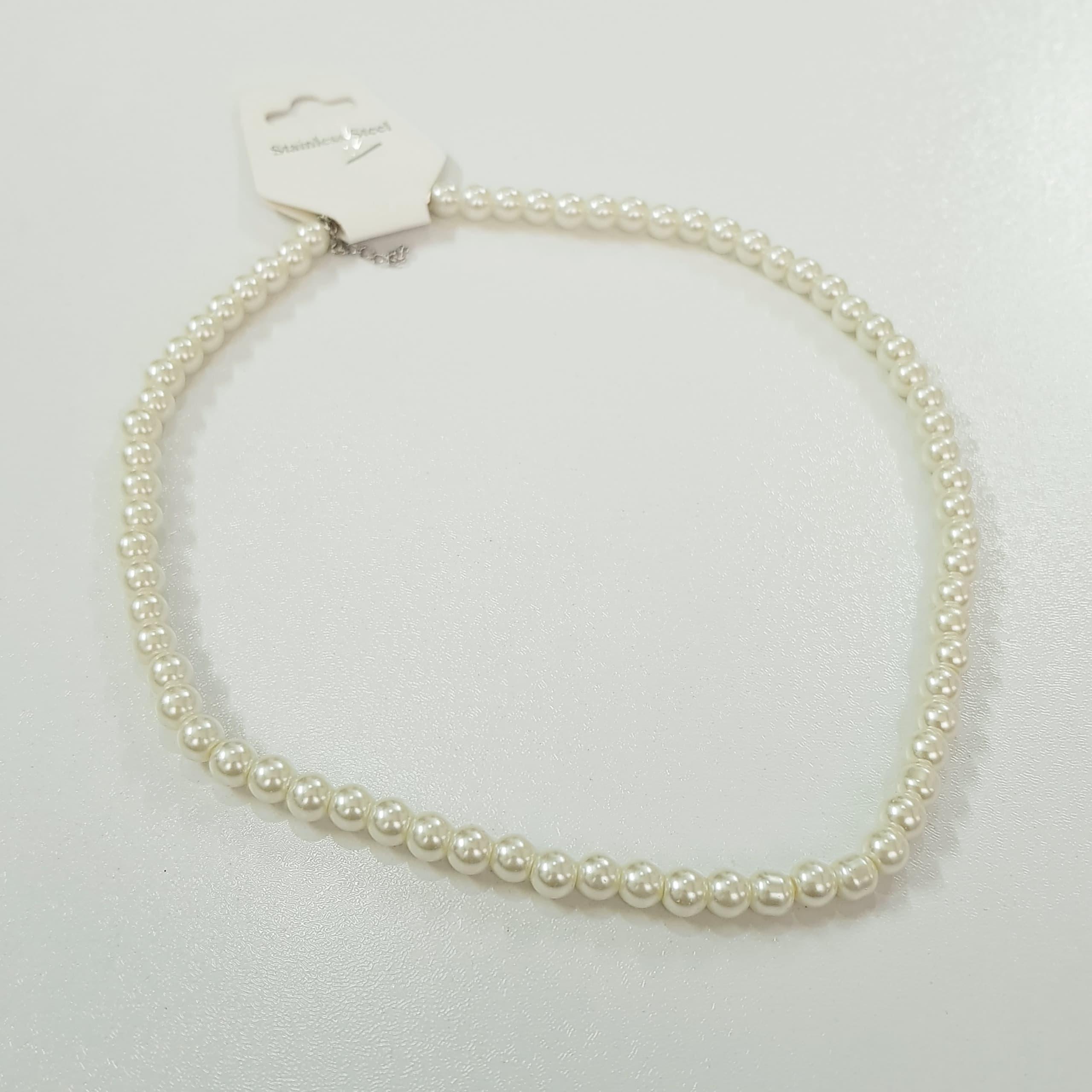 گلوبند تمام مروارید با زنجیر استیل ، بسیار زیبا و درخشان رنگ ثابت و ضد حساسیت