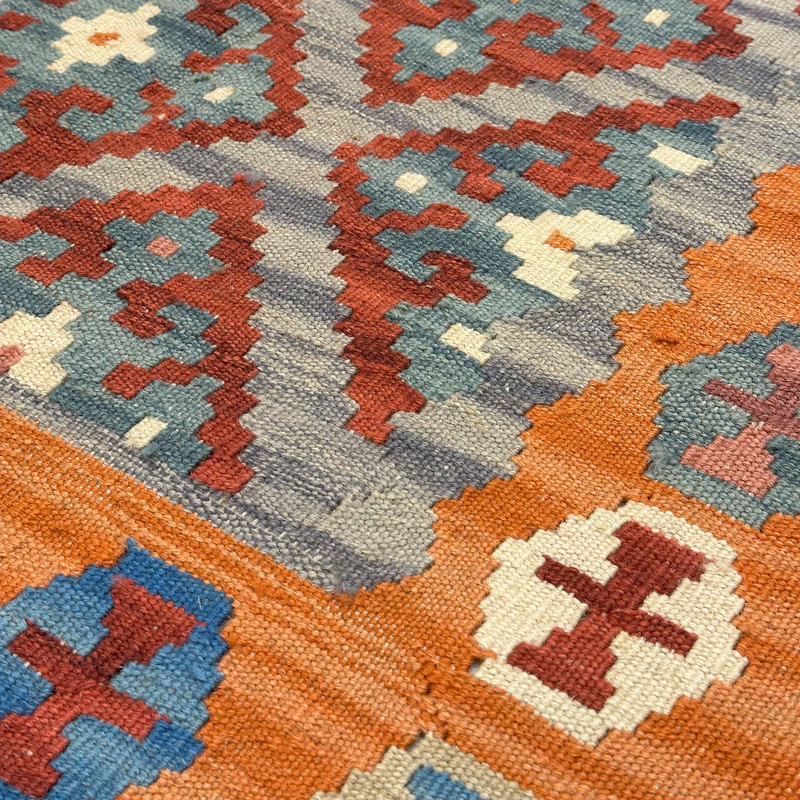 گلیم دستبافت طرح سنتی محصول بافندگان هنرمند استان فارس میباشد . بند این گلیم از پشم طبیعی و رنگرزی پشم آن طبیعی میباشد هارمونی رنگ آن سنتی ابرش دار و بافت آن به صورت دو رو میباشد .این گلیم شسته شده و دو گره خورده است .سوغاتی ارزنده از استان فارس و ایران زینت بخش منزل و دکورهای سنتی شما است .