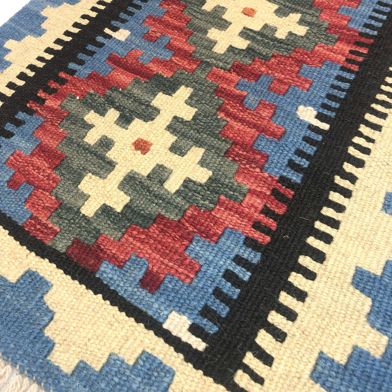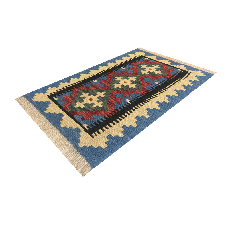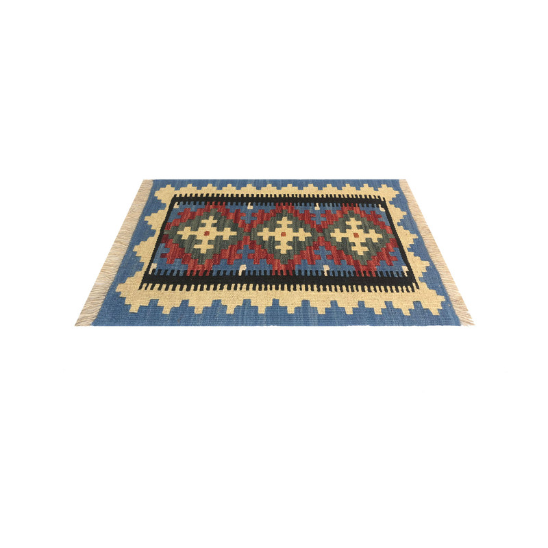 گلیم دستبافت طرح قشقایی محصول بافندگان هنرمند استان فارس میباشد . بند این گلیم از پشم طبیعی است و رنگ آن رنگ طبیعی میباشد و بافت آن به صورت مشبک و دو رو میباشد .این گلیم شسته شده و دو گره خورده است .سوغاتی ارزنده از استان فارس و ایران زینت بخش منزل و دکورهای سنتی شما است .