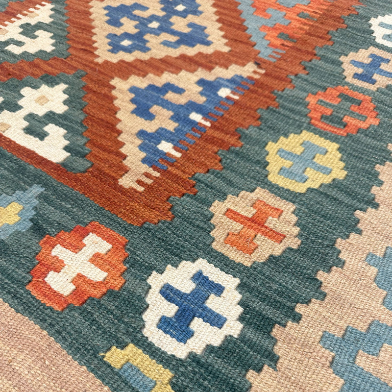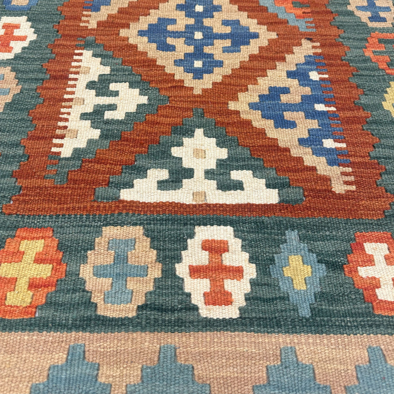 گلیم دستبافت سنتی طرح مدرن محصول بافندگان هنرمند استان فارس میباشد . بند این گلیم از پشم طبیعی است و رنگرزی پشم آن طبیعی و سنتی میباشد هارمونی رنگ آن سنتی ابرش دار و بافت آن به صورت دو رو میباشد .این گلیم شسته شده و دو گره خورده است .سوغاتی ارزنده از استان فارس و ایران زینت بخش منزل و دکورهای سنتی شما است .