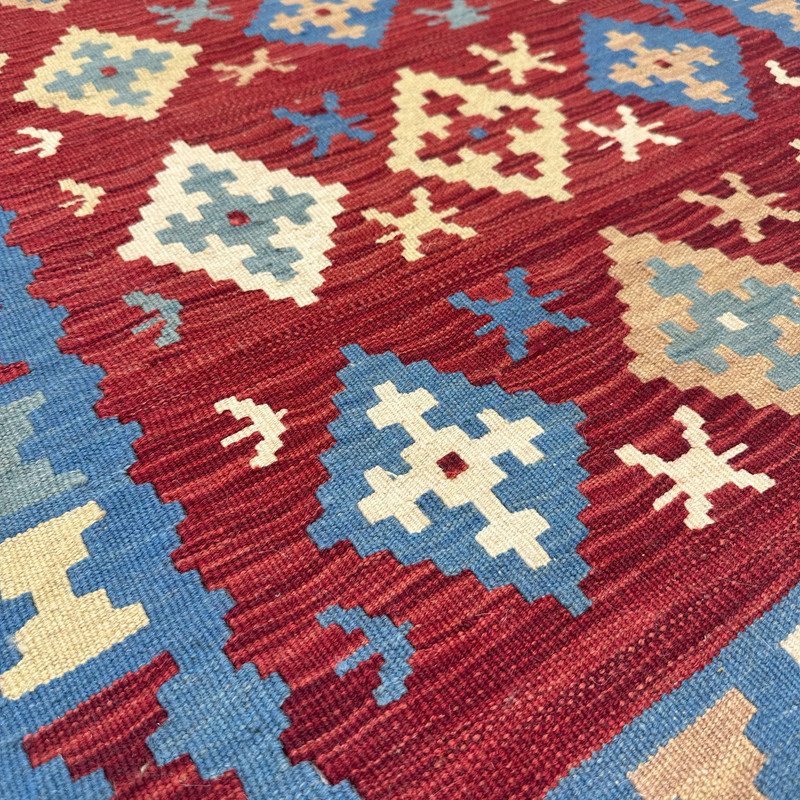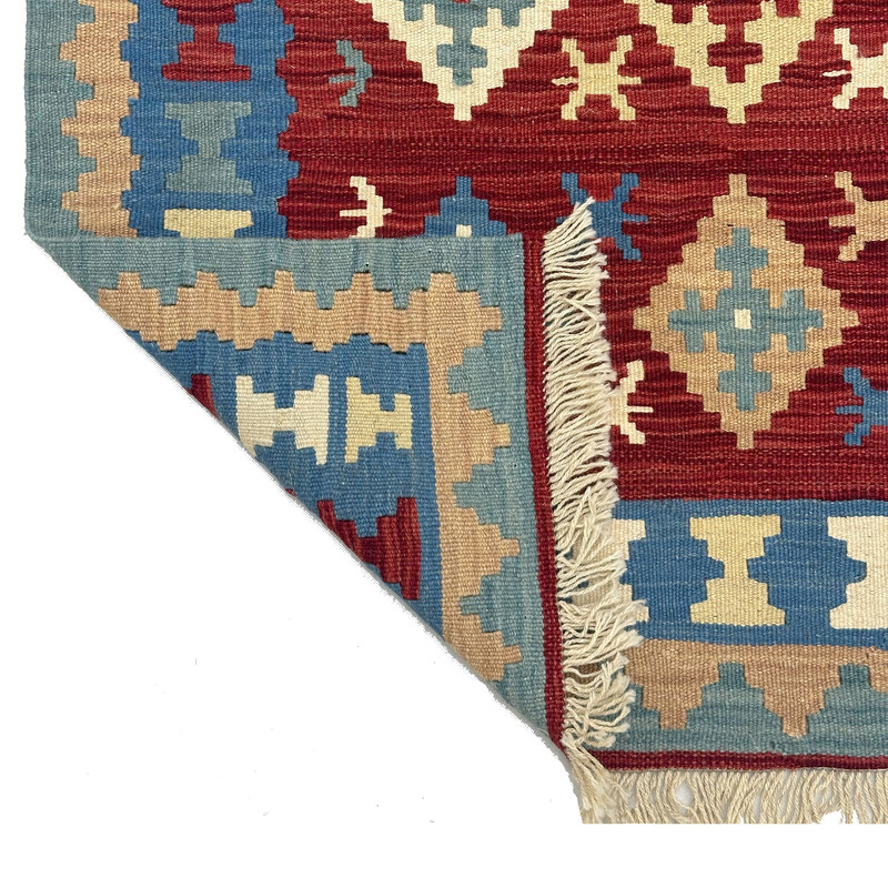 گلیم دستبافت سنتی طرح مدرن محصول بافندگان هنرمند استان فارس میباشد . بند این گلیم از پشم طبیعی است و رنگرزی پشم آن طبیعی و سنتی میباشد هارمونی رنگ آن سنتی ابرش دار و بافت آن به صورت دو رو میباشد .این گلیم شسته شده و دو گره خورده است .سوغاتی ارزنده از استان فارس و ایران زینت بخش منزل و دکورهای سنتی شما است .