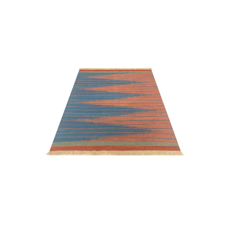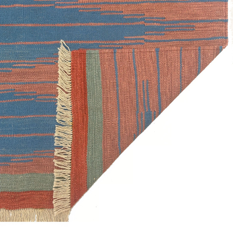 گلیم دستبافت سنتی طرح مدرن محصول بافندگان هنرمند استان فارس میباشد . بند این گلیم از پشم طبیعی است و رنگرزی پشم آن طبیعی و سنتی میباشد هارمونی رنگ آن ترکیب نخ خودرنگ و سنتی ابرش دار و بافت آن به صورت دو رو میباشد .این گلیم شسته شده و دو گره خورده است .سوغاتی ارزنده از استان فارس و ایران زینت بخش منزل و دکورهای سنتی شما است .