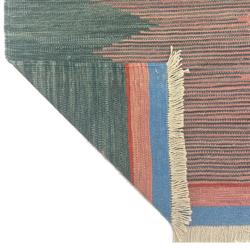گلیم دستبافت سنتی طرح مدرن محصول بافندگان هنرمند استان فارس میباشد . بند این گلیم از پشم طبیعی است و رنگرزی پشم آن طبیعی و سنتی میباشد هارمونی رنگ آن ترکیب نخ خودرنگ و سنتی ابرش دار و بافت آن به صورت دو رو میباشد .این گلیم شسته شده و دو گره خورده است .سوغاتی ارزنده از استان فارس و ایران زینت بخش منزل و دکورهای سنتی شما است .