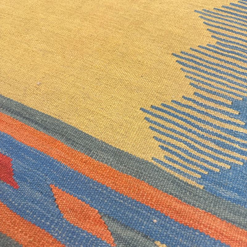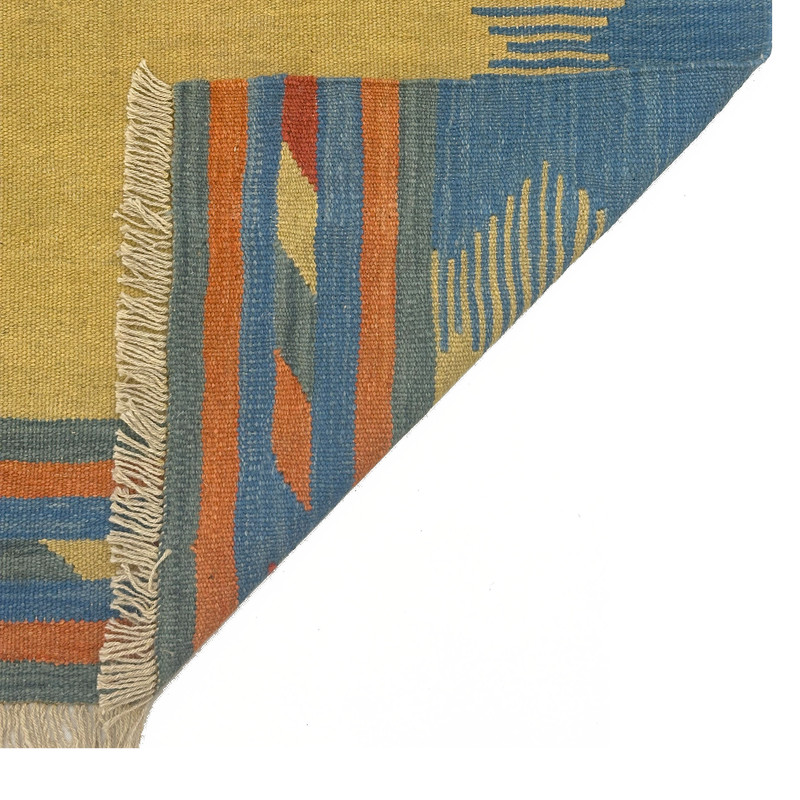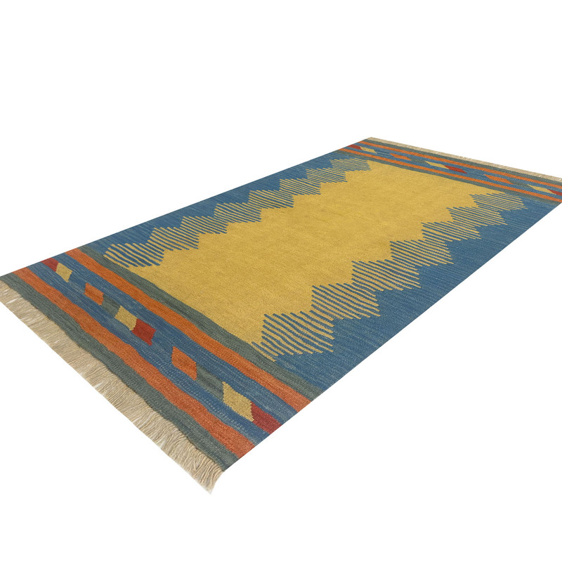 گلیم دستبافت سنتی طرح مدرن محصول بافندگان هنرمند استان فارس میباشد . بند این گلیم از پشم طبیعی است و رنگرزی پشم آن طبیعی و سنتی میباشد هارمونی رنگ آن ترکیب نخ خودرنگ و سنتی ابرش دار و بافت آن به صورت دو رو میباشد .این گلیم شسته شده و دو گره خورده است .سوغاتی ارزنده از استان فارس و ایران زینت بخش منزل و دکورهای سنتی شما است .