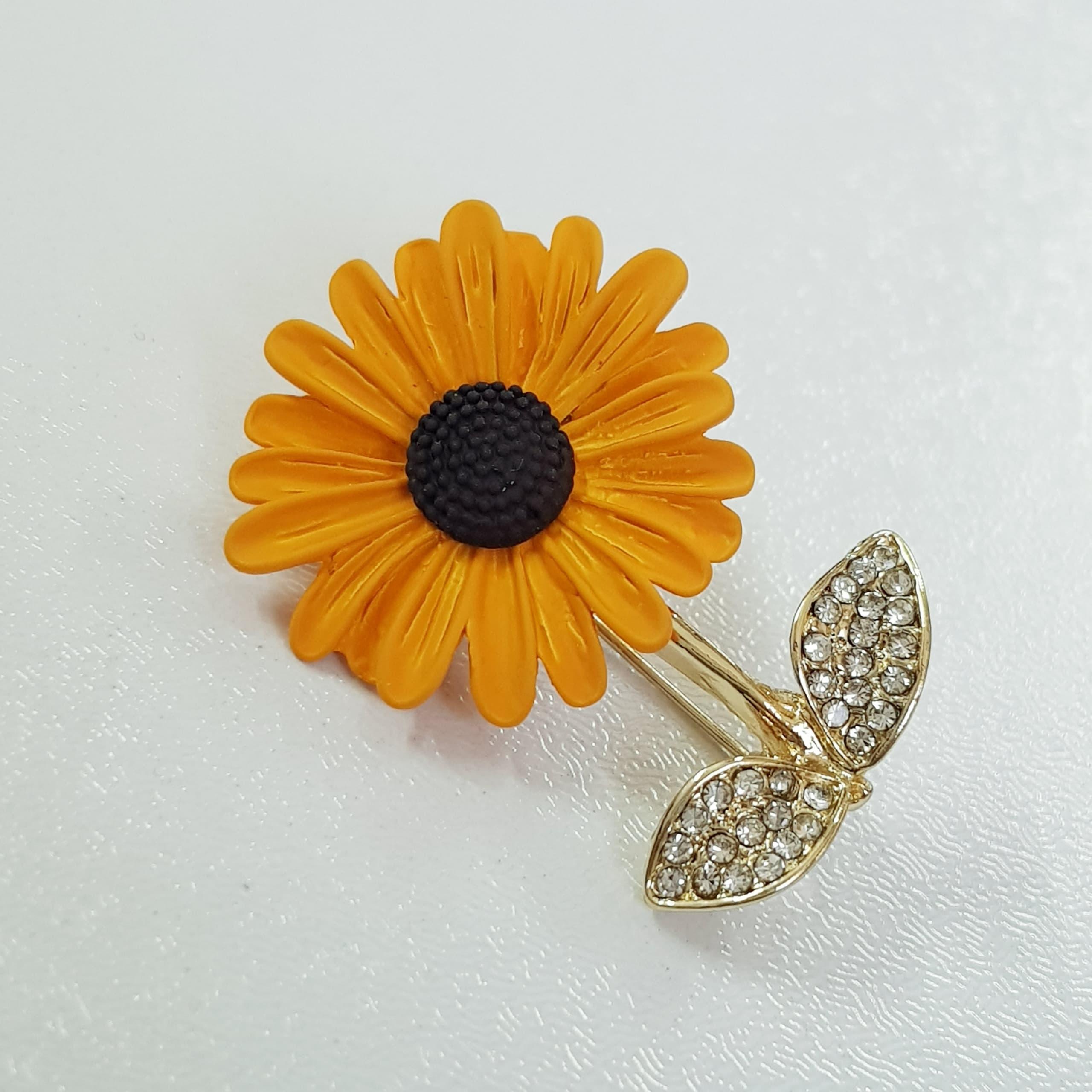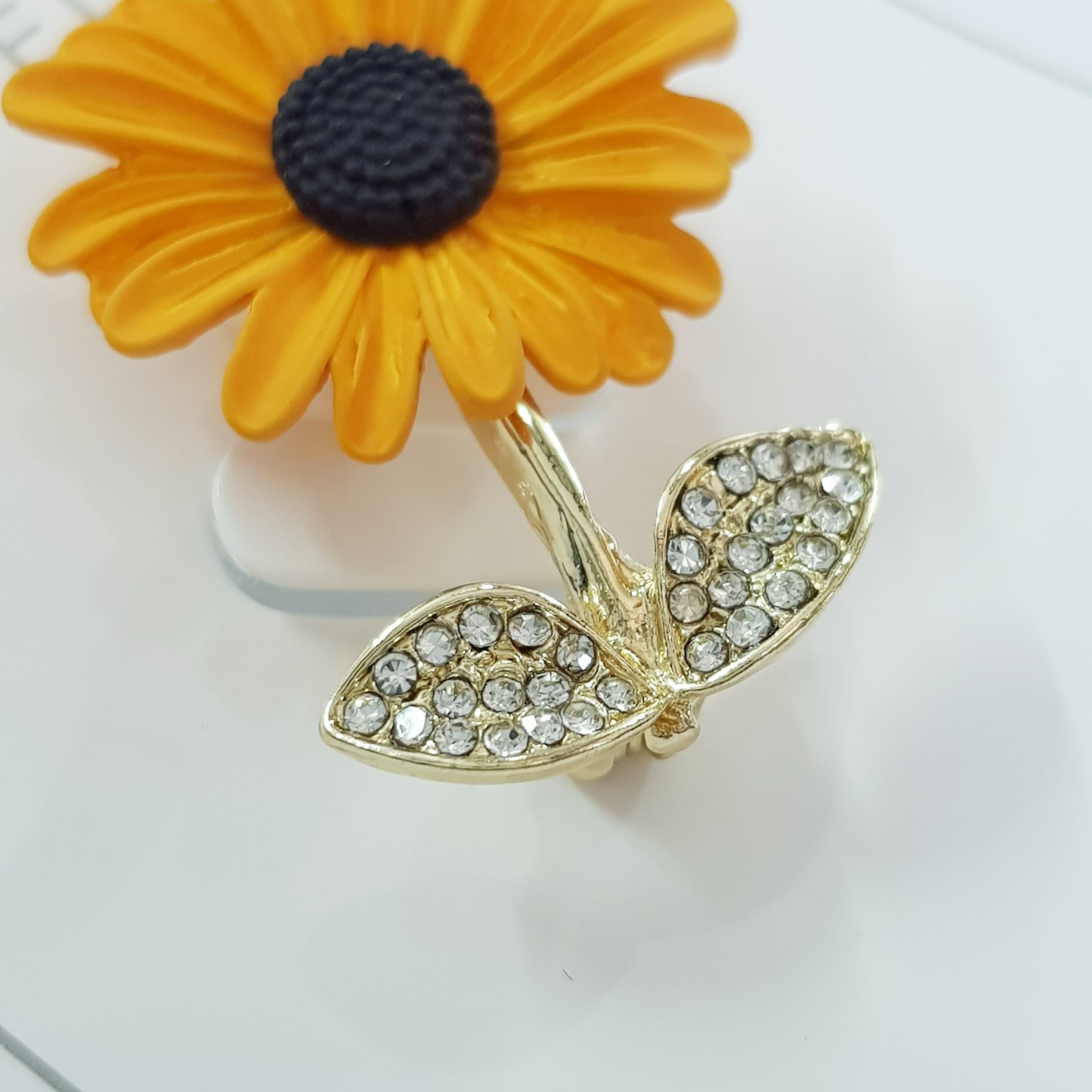 گل سینه طلایی طرح گل آفتابگردان نگین دار ، کار فوق العاده زیبا و فانتزی رنگ ثابت و ضد حساسیت
