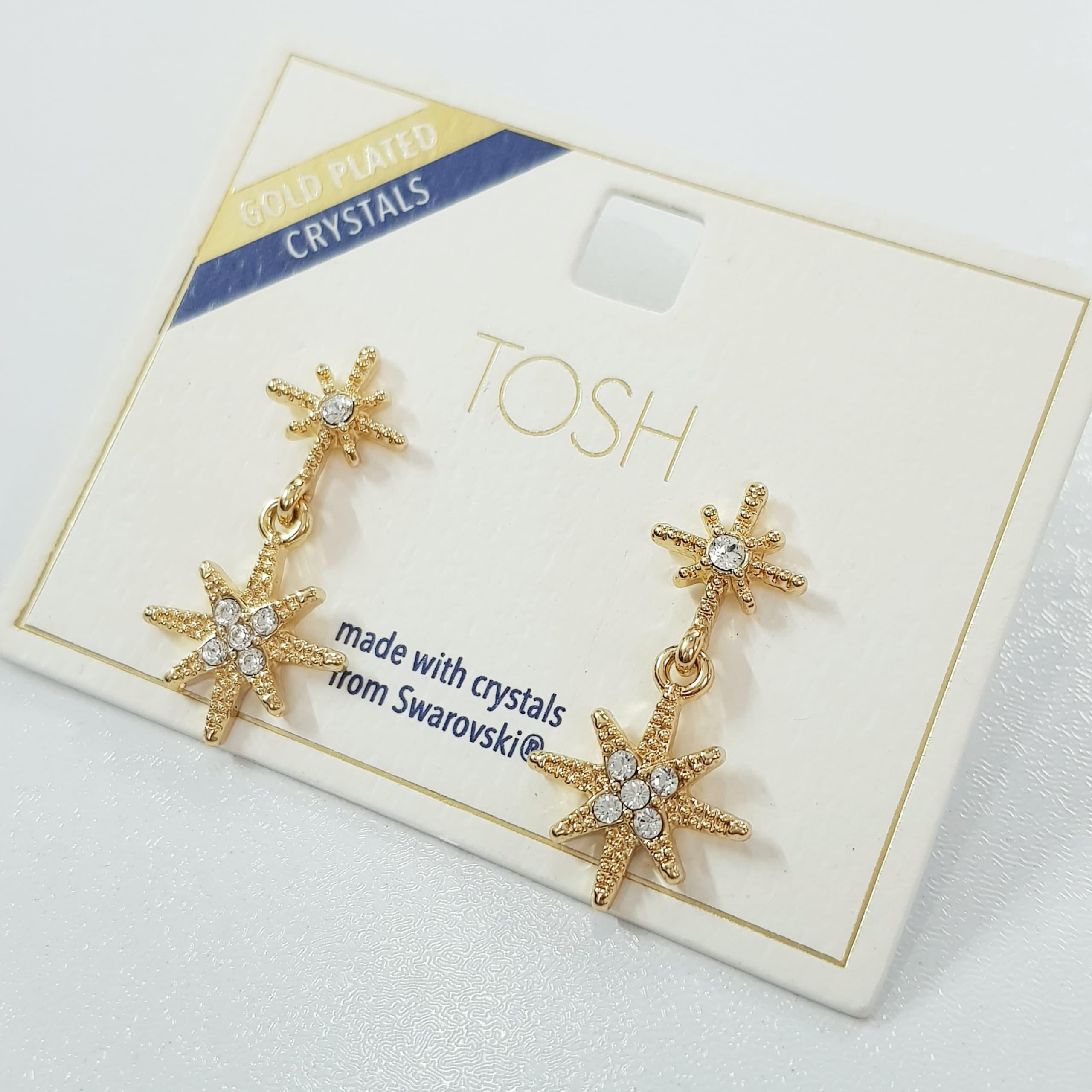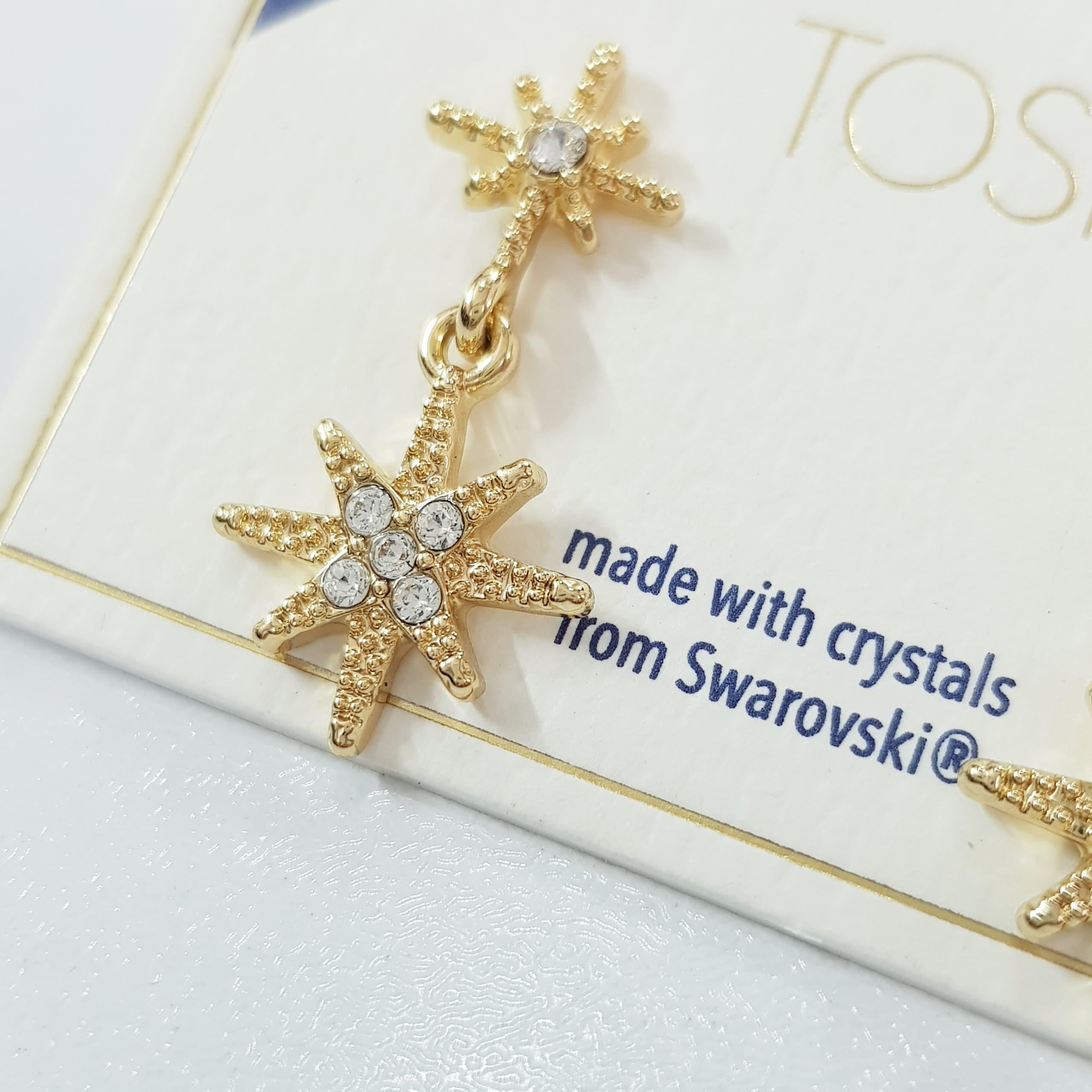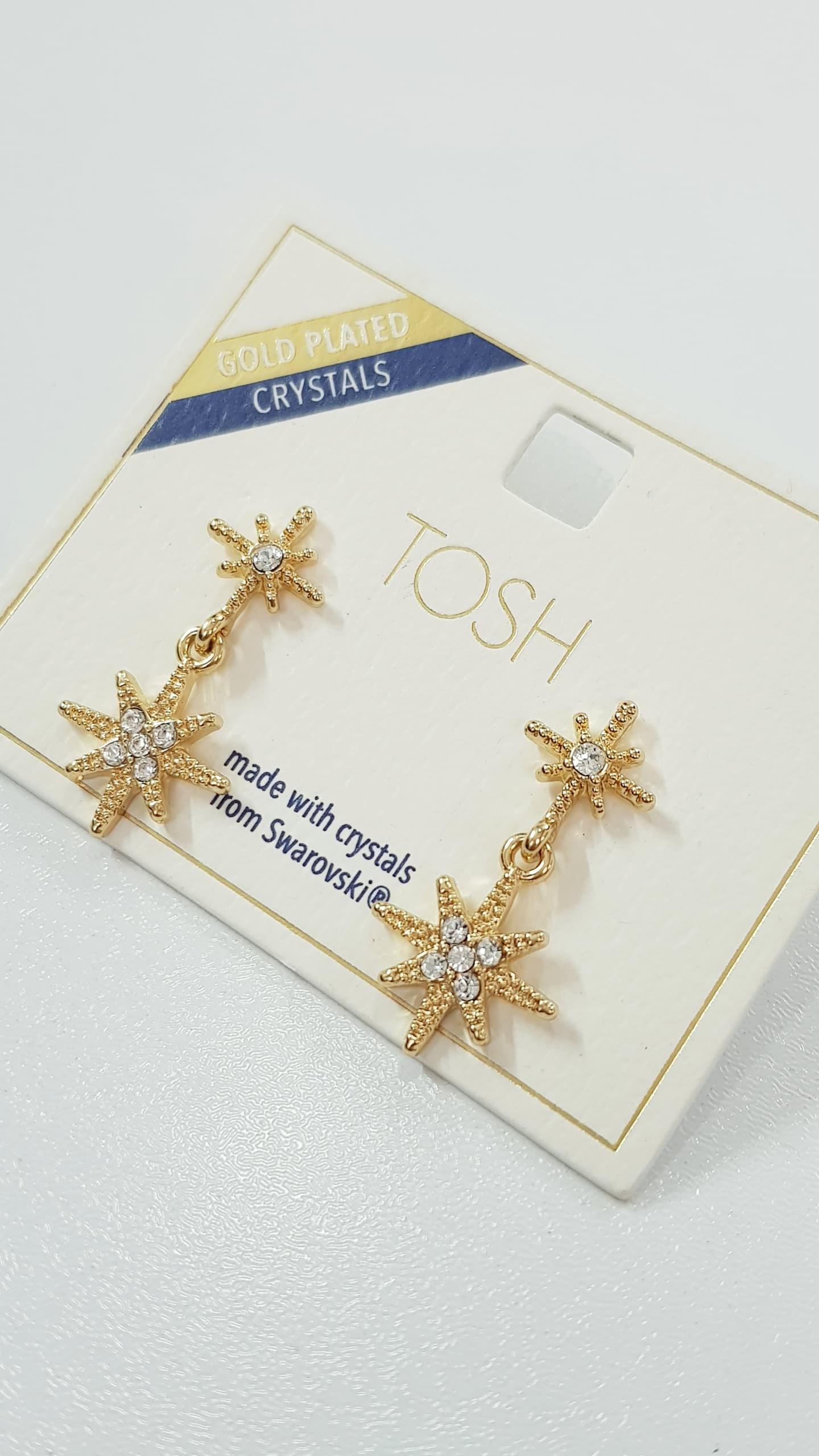 گوشواره آبکاری طلا آویز ستاره کار شده با سنگ های سواروسکی اصل ، فوق العاده زیبا و درخشان ضد حساسیت برند TOSH تحت لیسانس آلمان