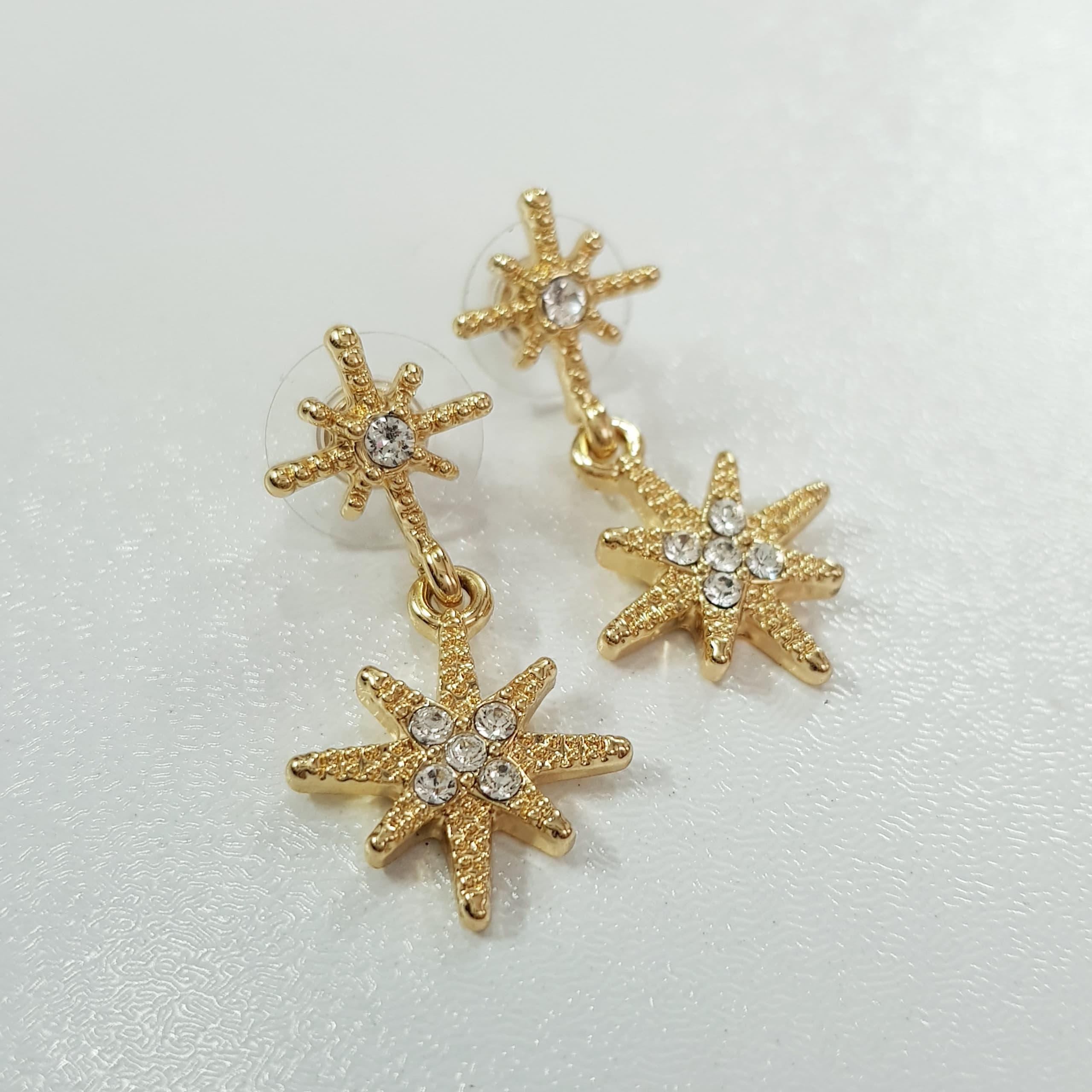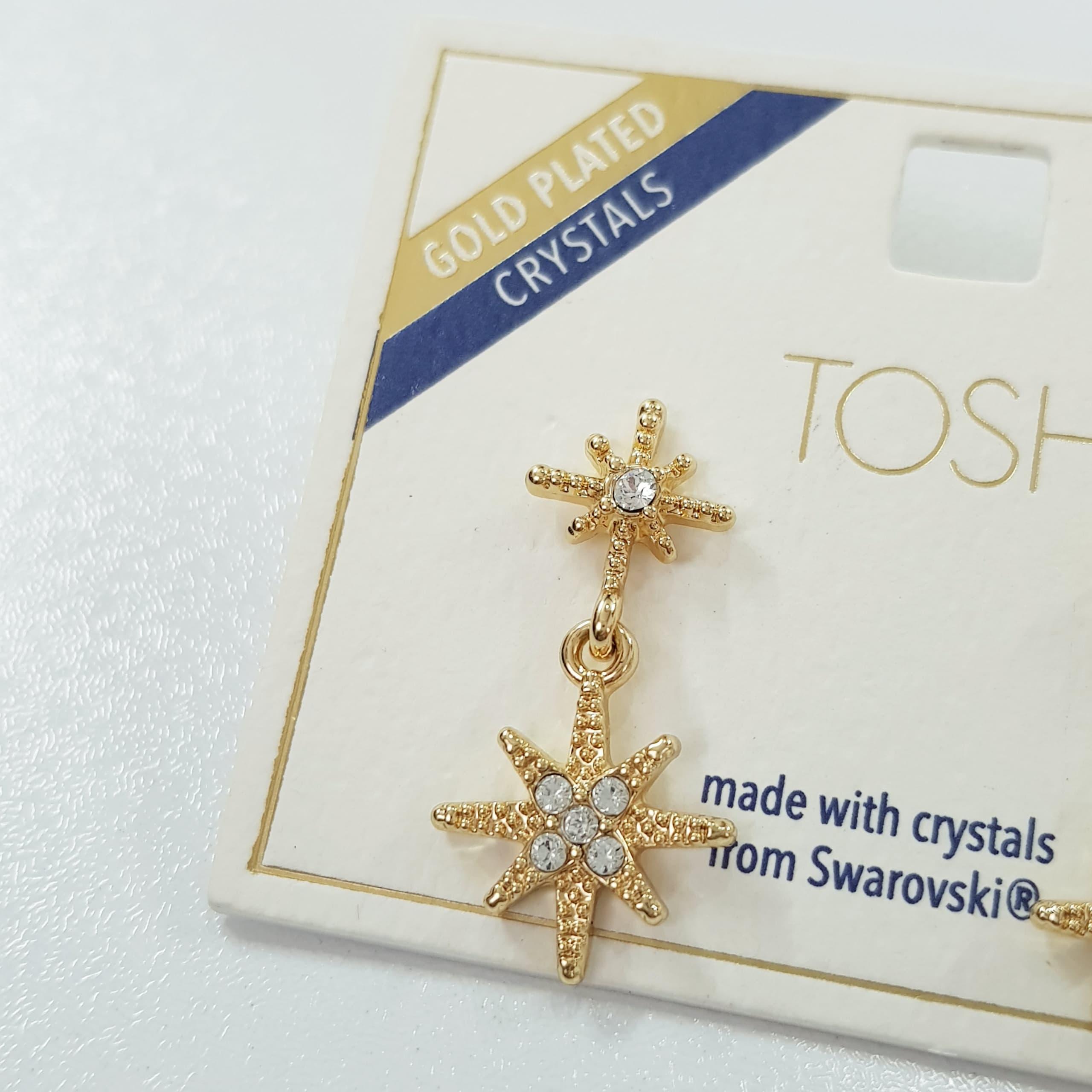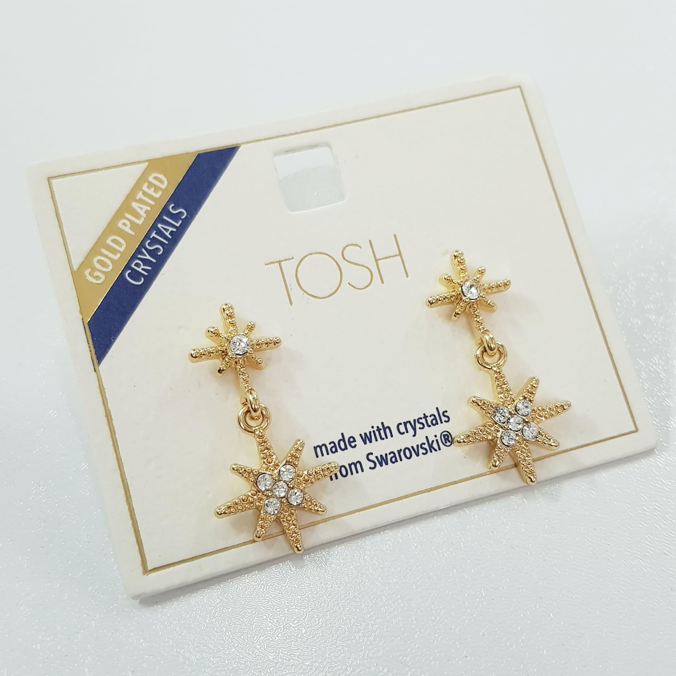 گوشواره آبکاری طلا آویز ستاره کار شده با سنگ های سواروسکی اصل ، فوق العاده زیبا و درخشان ضد حساسیت برند TOSH تحت لیسانس آلمان