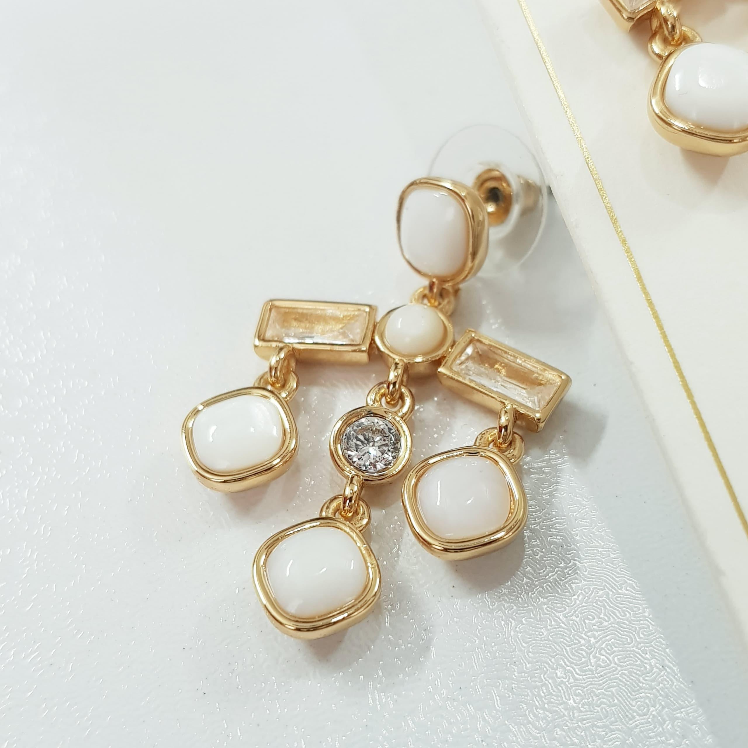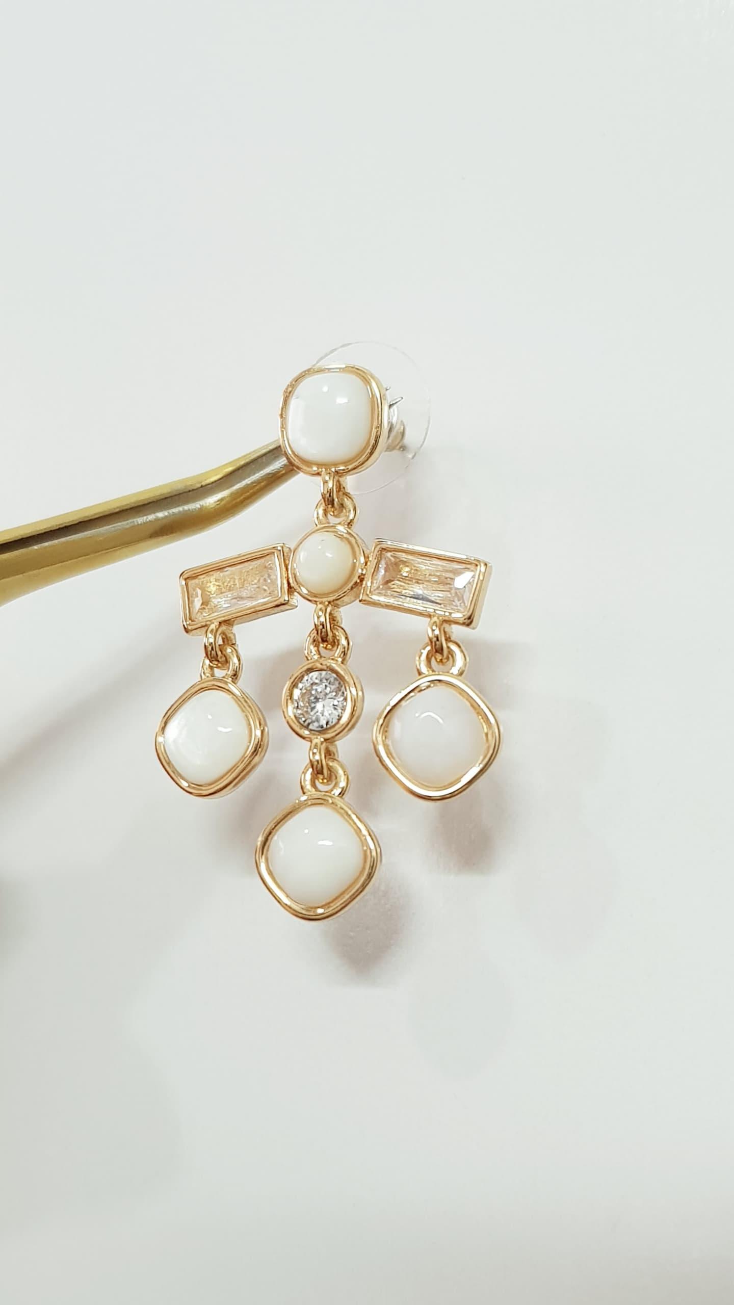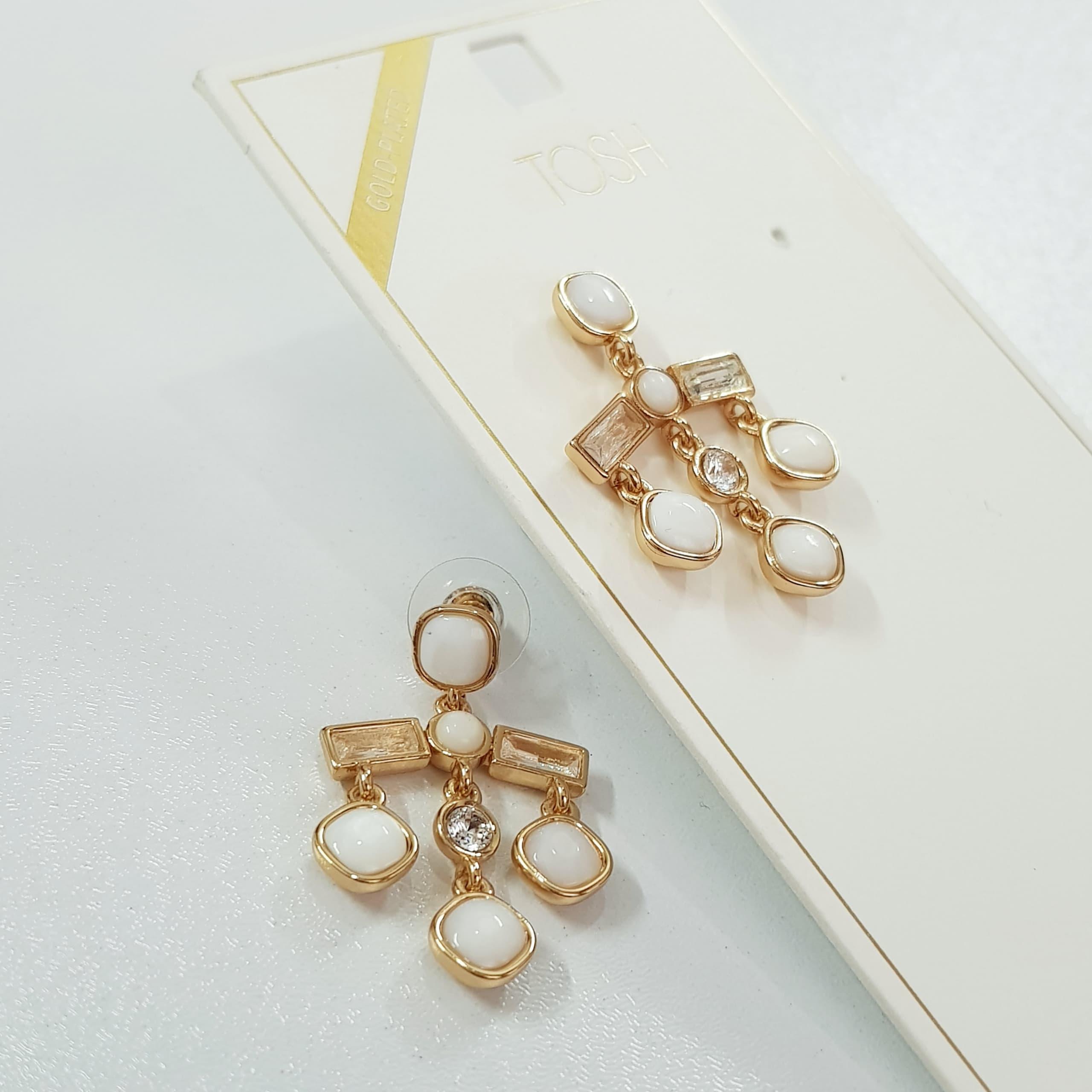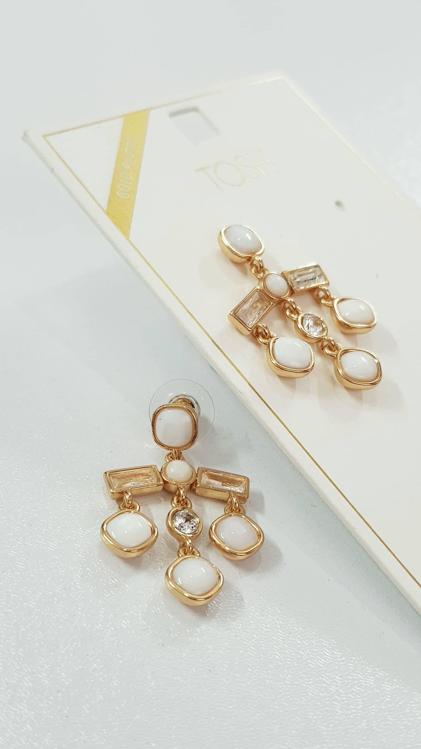 گوشواره آبکاری طلا آویز دار کار شده با سنگ صدف طبیعی ، فوق العاده زیبا و درخشان ضد حساسیت برند TOSH تحت لیسانس آلمان